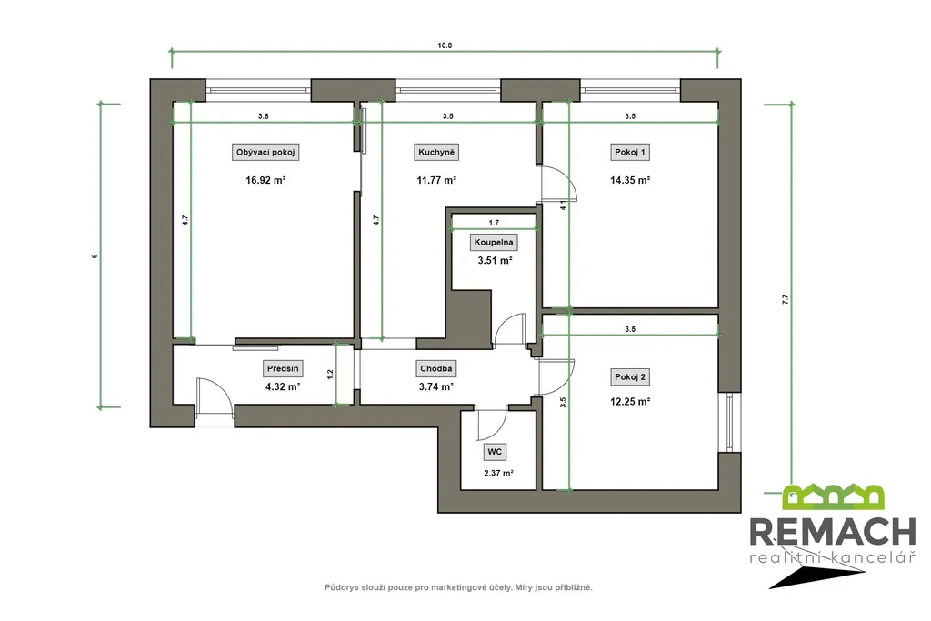 Dispozice bytu je velmi praktická a dobře řešená. Nabízí tři samostatné, neprůchozí pokoje, které poskytují dostatek soukromí – ideální řešení pro rodinné bydlení i případný pronájem. Dominantou bytu je prostorná kuchyně s dostatkem místa pro jídelní kout, kde se může stát přirozeným centrem domácnosti.