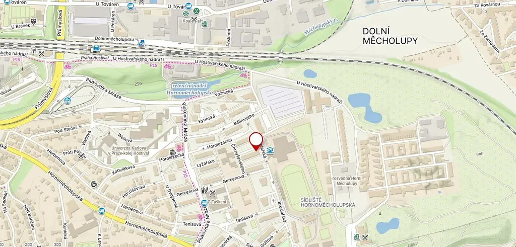 Velmi rychlé spojení MHD BUS, TRAM. Velmi zajímavou alternativou spojení je využití vlaku z nedalekého nádraží Praha Hostivař. Parkování možné u domu.