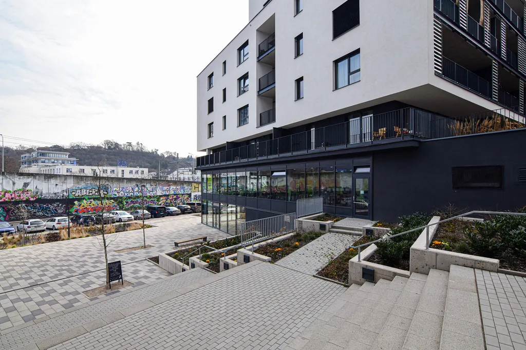 Dlouhodobý pronájem bytu 1+kk, podlahová plocha 32 m² + terasa 6,4 m² + sklep 5 m²