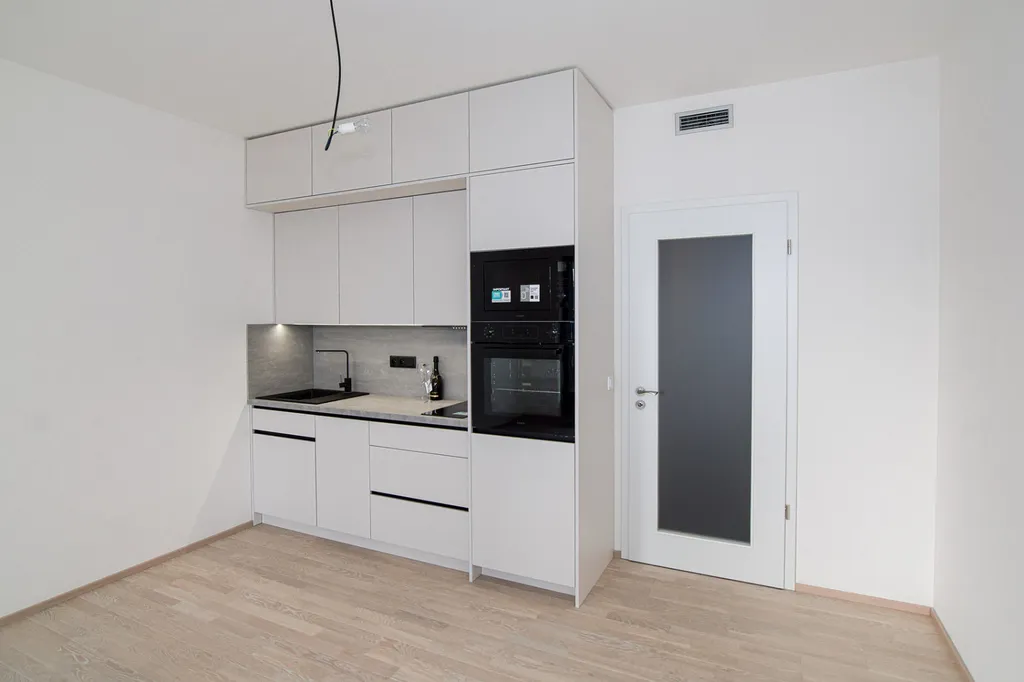 K dlouhodobému pronájmu vám nabízíme zcela nový, světlý byt o dispozici 1+kk v moderní rezidenci Zahálka v rychle se rozvíjející lokalitě Prahy 12 – Modřany. Byt je umístěn ve 5 NP. Celková podlahová plocha bytu činí 32 m². K bytu dále náleží terasa o velikosti 6,4 m² a sklep o výměře 5 m².
