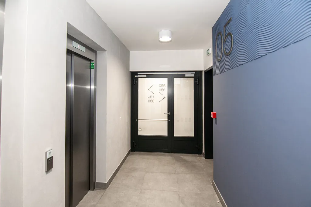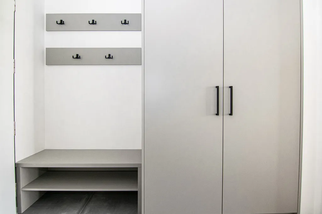 Byt je velmi vzdušný a nabízí dostatek denního světla. Při vstupu se nachází předsíň s na míru vyrobenou šatní skříní a botníkem. V celém bytě se aktuálně instalují stropní světla.