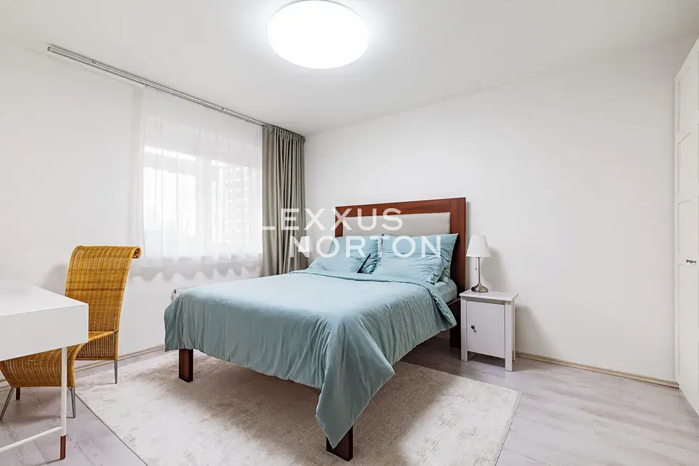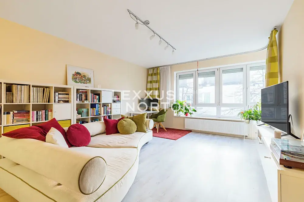 „Prostor“ je to slovo, které si zapamatujeme po návštěvě tohoto bytu v rezidenční novostavbě v ulici U Staré cihelny na Žižkově. Interiér s dispozicí 2+kk je rozložen na 61 m2 a nabízí tak pohodlné řešení pro každou z místností. Na vstupní halu (4,5 m2) navazuje obývací pokoj s kuchyňským koutem (32 m2) a na něj dále ložnice (16,5 m2), dispozici doplňuje koupelna (8 m2). Z obývacího pokoje můžeme dále vystoupit na balkon (4 m2). Ten je, stejně jako obě hlavní místnosti, orientován na západ s pohledem do vzrostlé zeleně a dále směrem k protilehlému bytovému domu. K bytu patří jedno parkovací stání a samostatný sklep (2,8 m2) v garážové hale umístěné v 1.NP budovy.