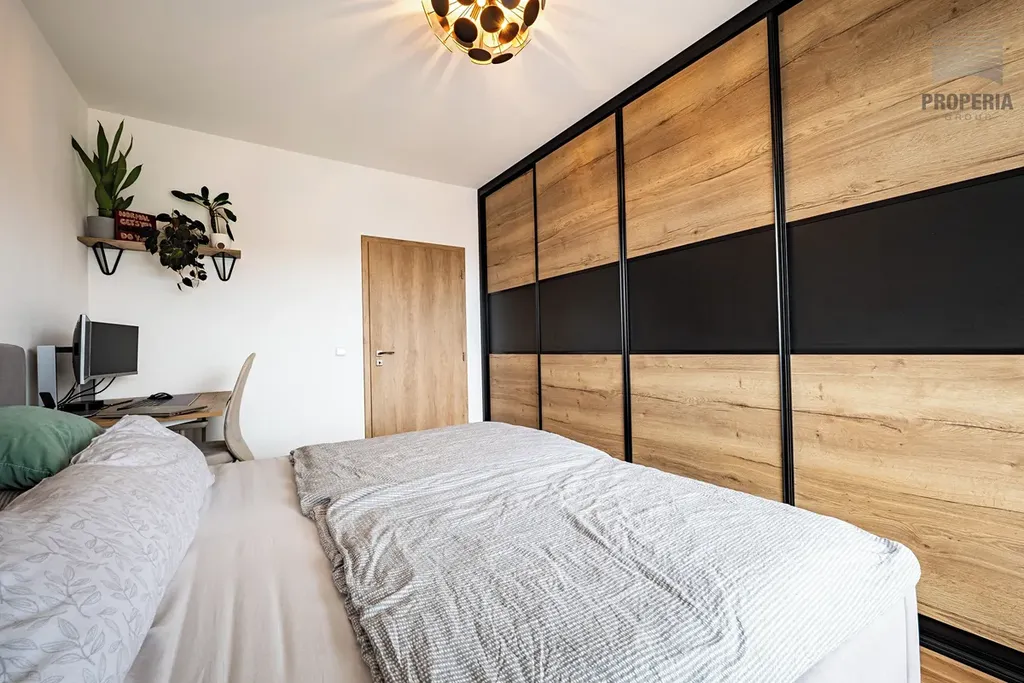 Byt je v perfektním stavu a prošel nadstandardním zařizováním, které uspokojí i ty nejnáročnější estetiky. Zapomeňte na kompromisy z řetězců – zde hraje prim nábytek vyrobený na míru, který dokonale využívá každý centimetr čtvereční a dodává celému prostoru jednotný, luxusní ráz.