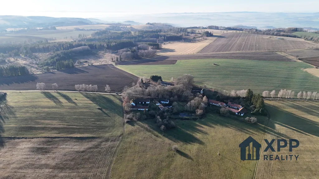 Nemovitost se nachází na klidné polosamotě a tvoří ji ucelený soubor pozemků o celkové výměře cca 5 010 m², včetně stávajících hospodářských objektů. Lokalita nabízí dostatek soukromí, otevřený prostor a přímou návaznost na okolní krajinu.