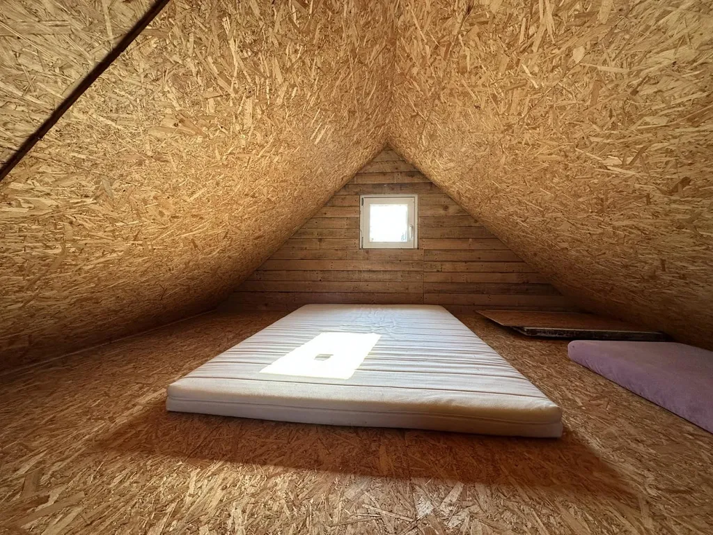 Vytápění zajišťují kamna. Ke spaní byla mimo jiné využívána místnost pod střechou.