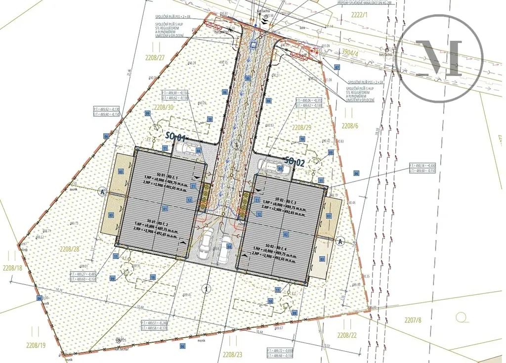 Projekt počítá s výstavbou dvou rodinných domů, na každém pozemku jeden. Každý dům je navržen jako dvojdům se dvěma bytovými jednotkami o dispozici 4+kk a podlahové ploše 110,93 m². Celkem tedy vzniknou čtyři samostatné bytové jednotky vhodné pro následný prodej koncovým klientům.
