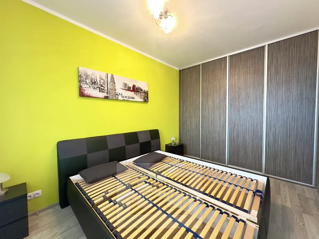 Byt má plně vybavenou kuchyň se všemi spotřebiči (lednice, myčka, trouba, indukční deska), obývací pokoj nabízí pohodlnou pohovkou a jídelní stůl. Z obývací části se dostaneme na prostorný balkon s krásným výhledem. Ložnice nabízí pohodlnou postel a vestavěnou šatní skříň. V koupelně najdete vanu a toaletu. V chodbě další šatní skříň.