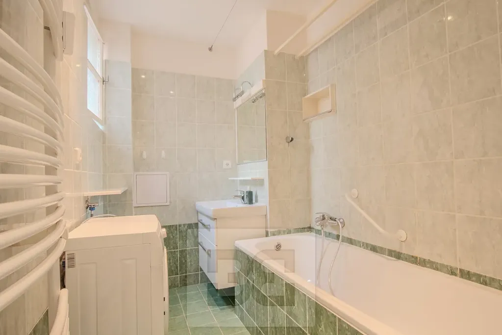 Dominantou bytu je nádherný výhled na severní část Prahy, zatímco z jižní strany se nabízí pohled do tichého vnitrobloku. Díky poloze v nejvyšším patře si byt zachovává maximální soukromí a klid.