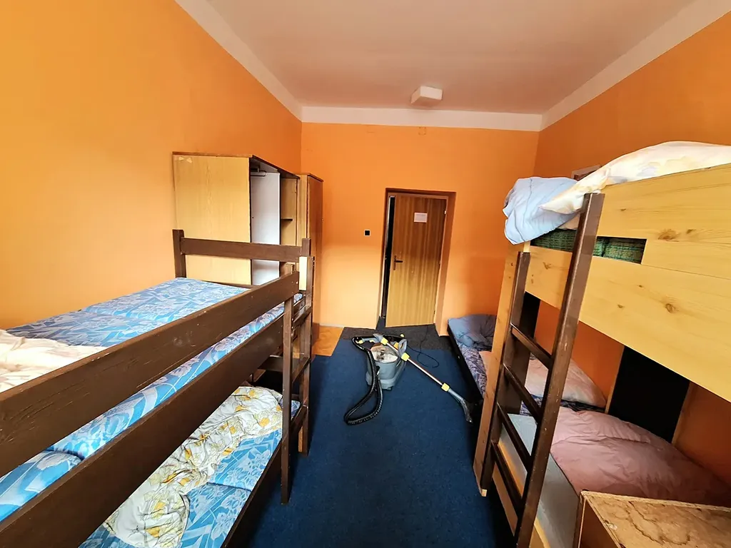 2.PP - 4 obytné místnosti využité jako byty pro zaměstnance, společná kuchyňka, sprchy, WC, sklad, dále samostatné místnosti, kde je umístěn výměník tepla, bojlery.