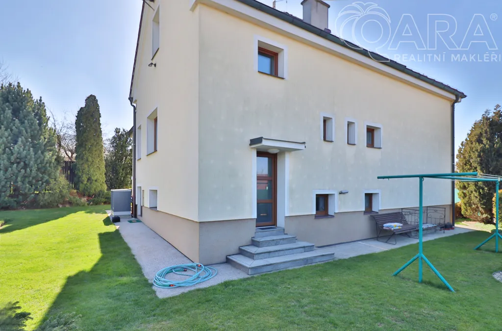 V suterénu domu se nachází prostorná garáž pro dvě auta (40 m²) spolu s technickým zázemím, sklepem, skladem a prádelnou. Přízemí tvoří světlý obývací pokoj propojený s plně vybavenou kuchyní o celkové ploše 42 m², dále pokoj vhodný jako pracovna či pokoj pro hosty, vstupní hala, samostatná toaleta a praktická spíž. V patře je k dispozici hala se vstupem do tří ložnic, druhý obývací pokoj, koupelna s toaletou a šatna.