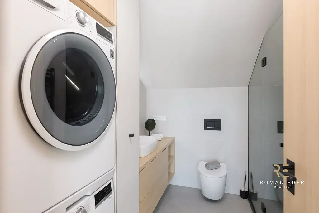 Třetí nadzemní podlaží (70 m²) představuje samostatnou bytovou jednotku 3+kk s útulnou teráskou. Tento byt je nově vybudovaný a připravený k okamžitému nastěhování. Skládá se z nové věstavené kuchynské linky se všemi spotřebiči v obývací místnosti, díle z ložnice, pracovny, koupleny se sprchovým koutem a wc, a dvou komor. Vstup do tohoto podkrovního bytu je přes venkovní schodiště ze zahrady. Je tedy na spodních podlaží naprosto nezávislý. Je zde také příprava na klimatizaci. Vytápěn je plynovým kotlem.