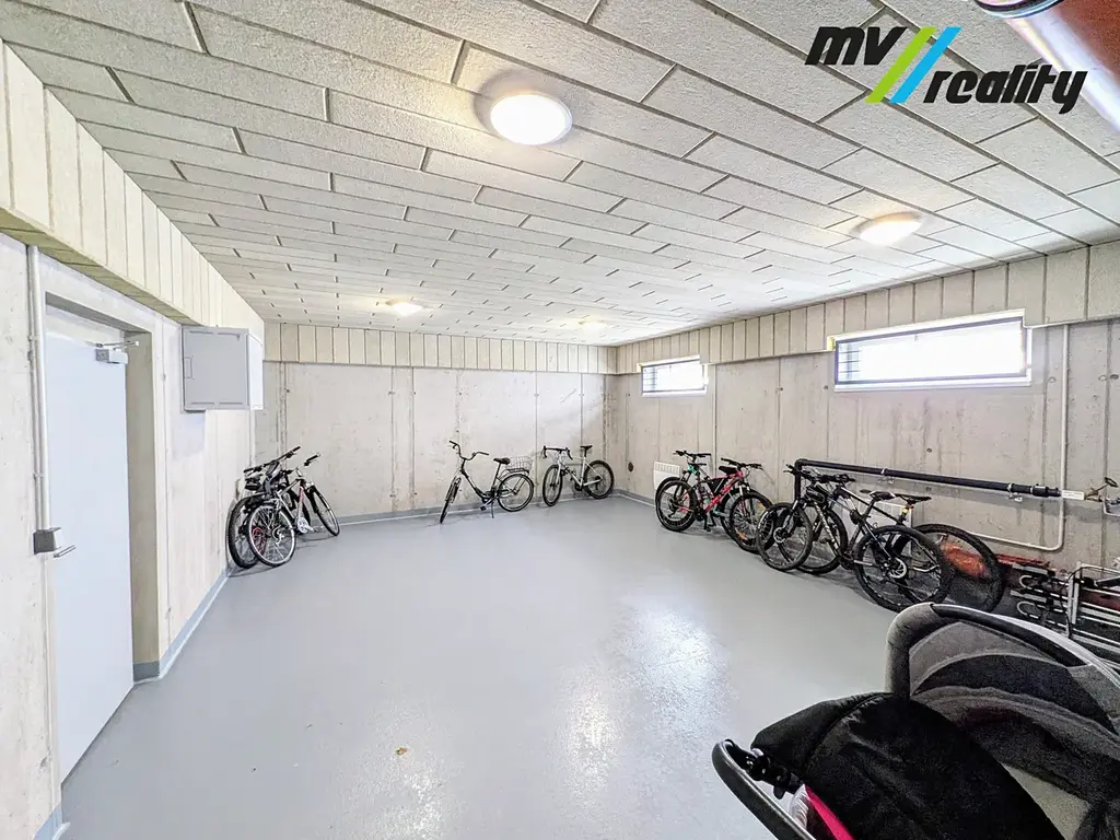 K bytu náleží jedno venkovní parkovací stání a jedno garážové stání přímo pod domem. K dispozici je rovněž společná kočárkárna / kolárna.