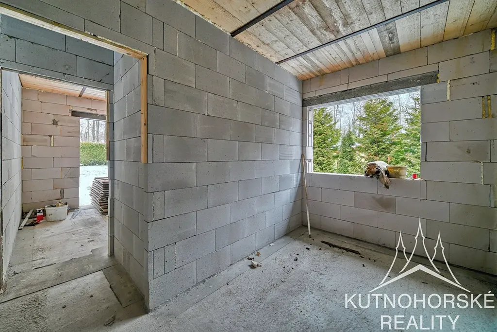 Rozestavěná stavba o dispozici 5+kk + samostatné 1+kk stojí na pozemku o rozloze 1450 m². Součástí prodeje je také podíl na příjezdové cestě.