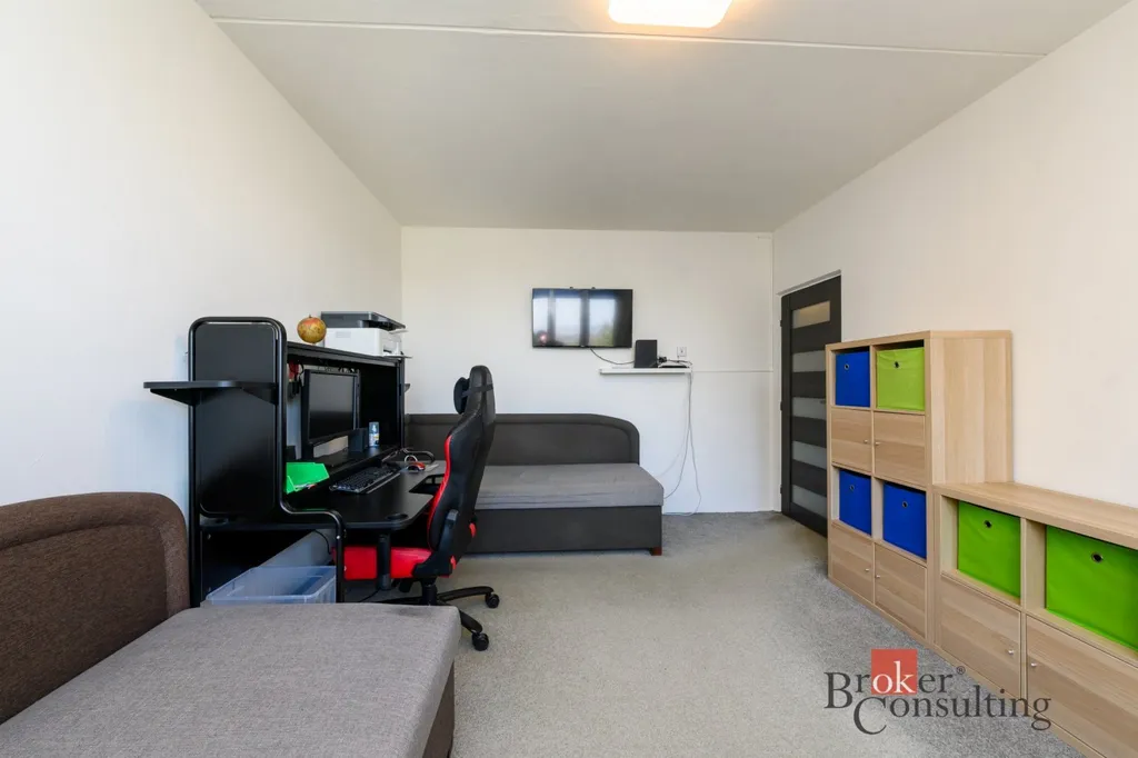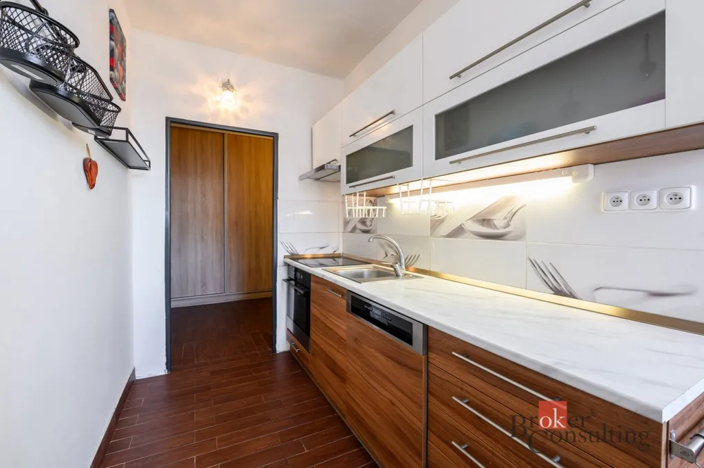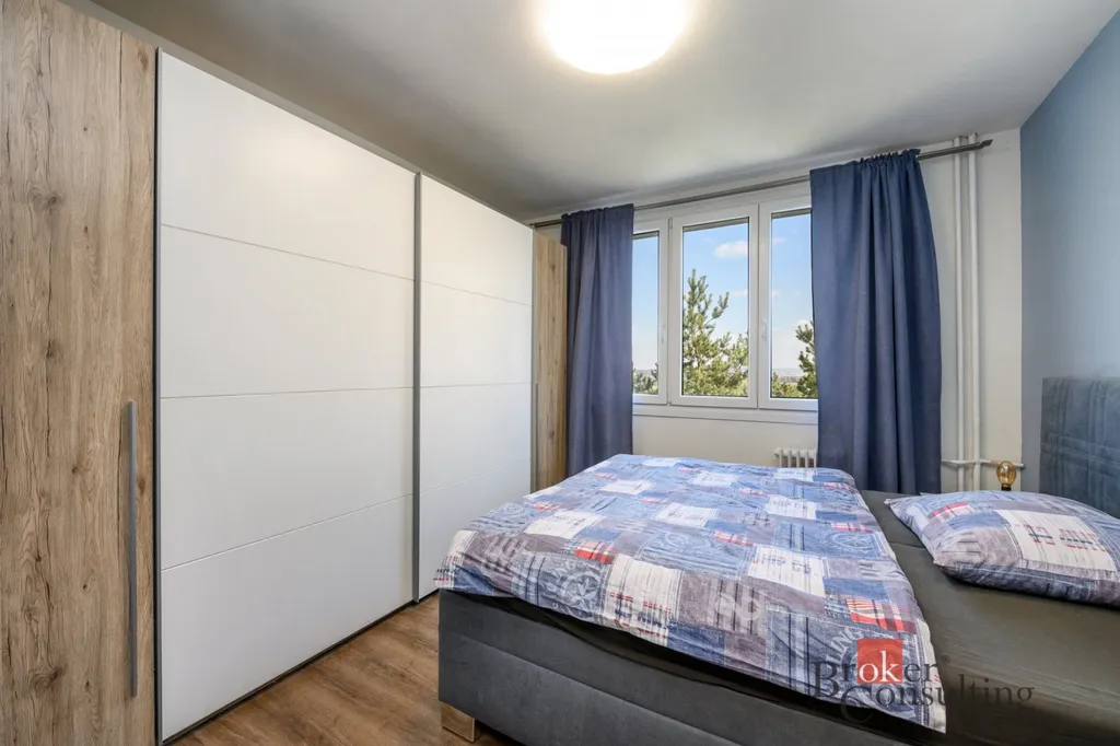 Dispozice bytu zahrnuje kuchyň, prostorný obývací pokoj, ložnici, samostatný pokoj a koupelnu s WC. V obývacím pokoji se nachází krb na biolíh, který vytváří příjemnou atmosféru a dodává interiéru moderní prvek.