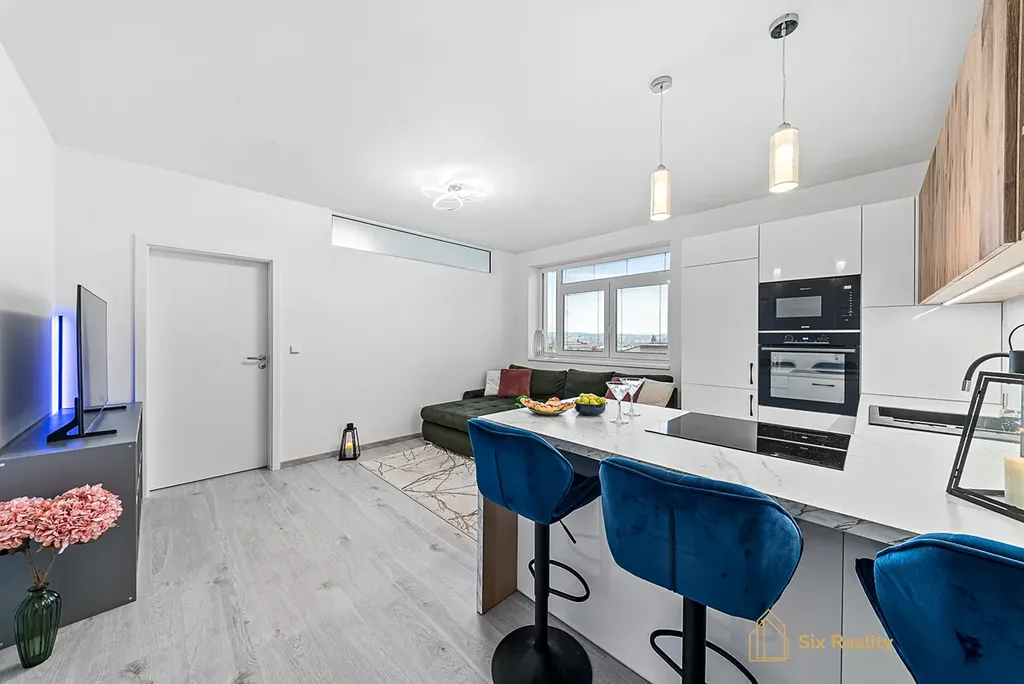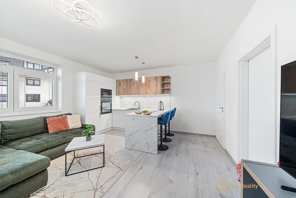 Byt o dispozici 3+kk s užitnou plochou 63 m² je ideálním domovem pro pár či mladou rodinu, která hledá prostor, světlo a jednoduchost. Moderní kuchyně na míru plynule přechází v obývací část a tvoří srdce celého bytu. Každé ráno vás probudí východní slunce, které sem proniká velkými okny i na pětimetrový balkon – ideální místo pro ranní kávu nebo chvíli klidu. Dispozice bytu působí svěže a přirozeně – nic tu není navíc. Vestavěné skříně v chodbě i v jednom z pokojů přinášejí pořádek a vzdušnost.