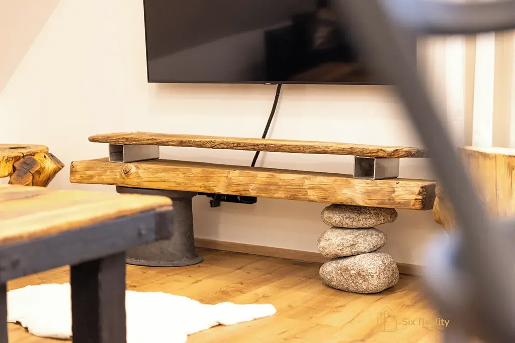 Máme pro Vás připravený útulný apartmán v podkroví o dispozici 1kk a velikosti 45 m2 v nově dokončeném projektu a to přímo u sjezdovky SKI areálu Plešivec. Centrem celého bytu je prosvětlený obývací pokoj s kuchyní na míru, která se opravdu povedla, a prostor, který plní funkci ložnice s velkou manželskou postelí. Dále zde najdeme i vstup na nadstandardní balkon, odkud budete mít krásný výhled do krajiny, nebo na obec Abertamy a možnost si tak vychutnat klid a pohodu s něčím dobrým v ruce. Ze středu bytu se po žebříku dostaneme do úplného podkroví celého apartmánu, kde najdeme soukromí a útulno v podobě ložnice pro dvě osoby. Ale myslím, ze tady se bude líbit hlavně dětem. Koupelna s černými prvky je vkusně dokončená a právě ty podtrhují originalitu a osobitost celého apartmánu. Největším benefitem pak pro Vás bude soukromá sauna, která je přístupná přímo z koupelny. Veškeré interiérové vybavení je ruční výroba masivního nábytku s důrazem na přirozenou krásu dřeva.