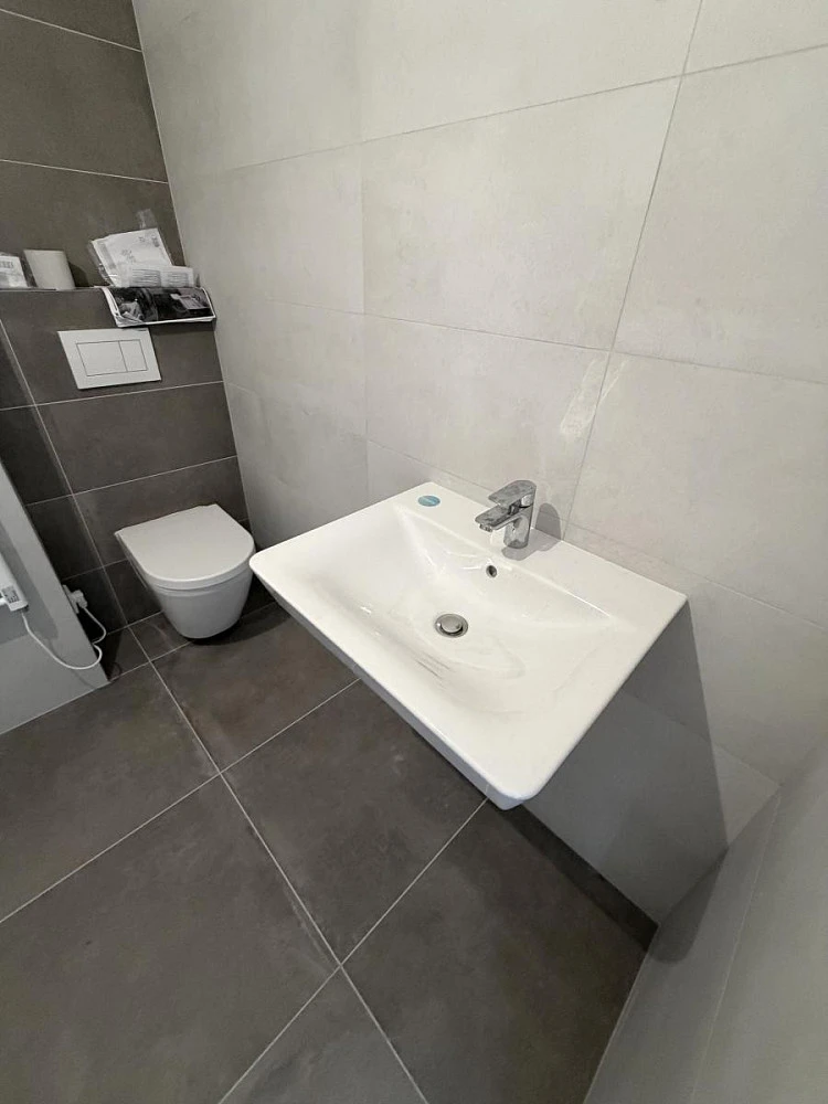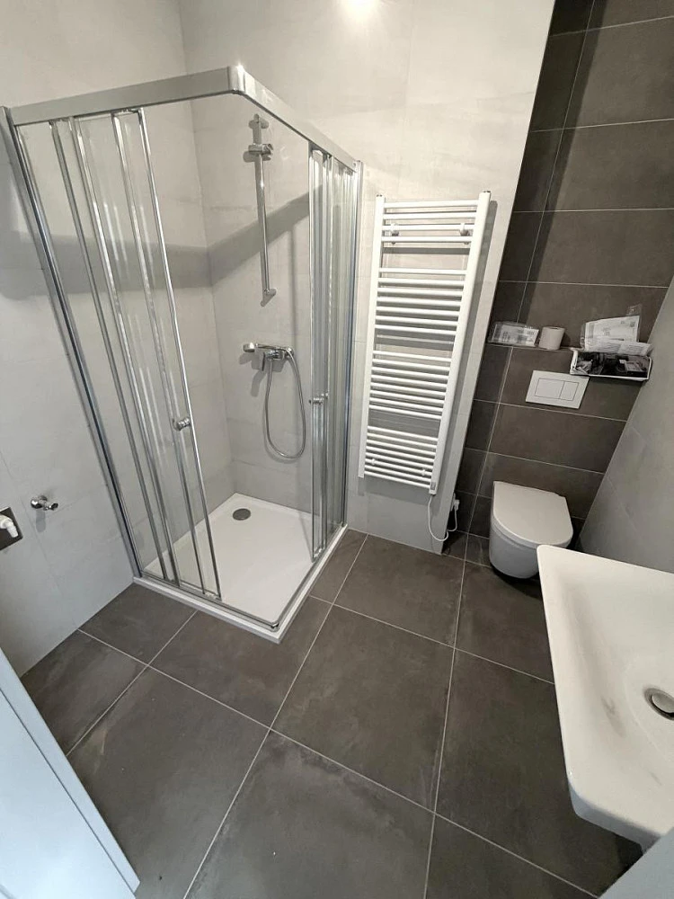 Koupelna má cca 4,01 m². V koupelně je sprchový kout, WC, umyvadlo se zrcadlem a je zde příprava na pračku.