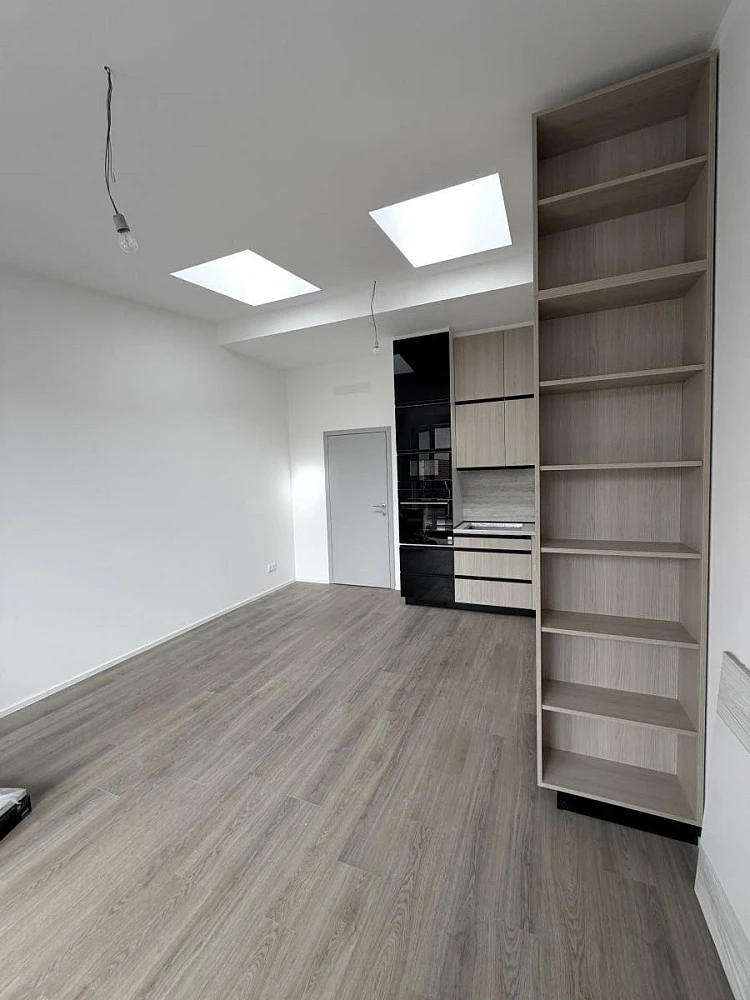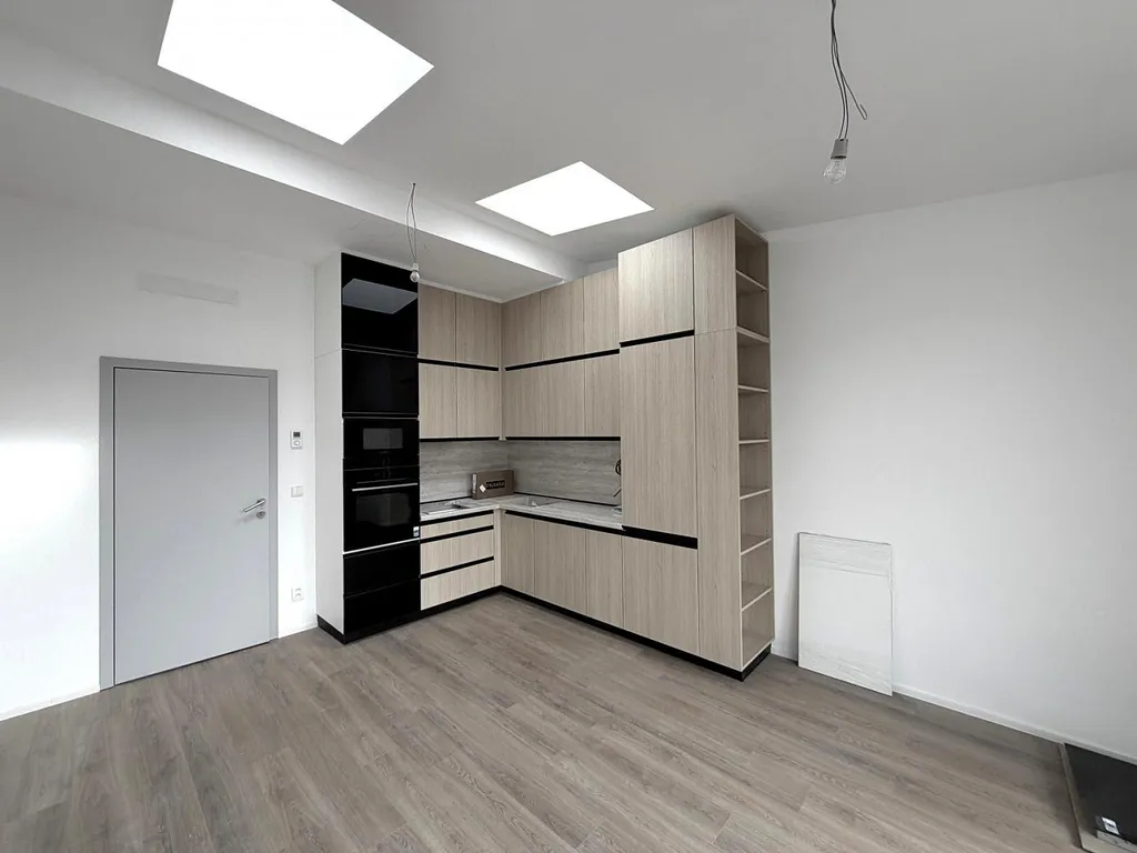 Součástí této místnosti je nová kuchyňská linka vybudovaná na míru, která je vybavena troubou, lednicí s mrazákem, myčkou, digestoří a sporákem. Dominantou této místnosti je balkon o výměře cca 4,63 m², který je orientovaný do klidného vnitrobloku. Součástí této místnosti jsou mimo jiné dvě střešní okna, která jsou elektricky ovladatelná jak otevíráním, tak zastiňováním. V oknech této místnosti budou venkovní žaluzie.