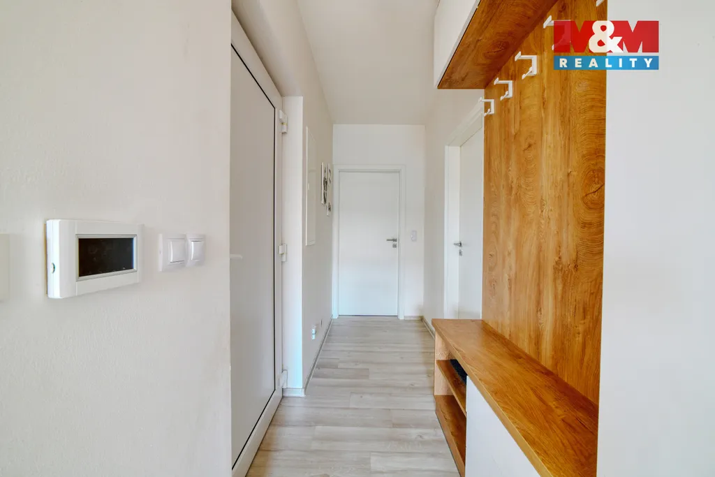 Hledáte bydlení v menším rodinném domě s prostornou zahradou? Nabízíme novostavbu (kolaudace 2022) o dispozici 3+kk, která se nachází v obci Šabina, cca 7 km od Sokolova. Jedná se o nepodsklepenou dřevostavbu s jedním nadzemním podlažím, půdorysu tvaru „L“, s otevřenou terasou o výměře 32 m², ze které je přímý vstup do domu. Dům o podlahové ploše 54,74 m² nabízí obývací pokoj s kuchyňským koutem, ložnici, samostatný pokoj a koupelnu s WC. Vytápění je řešeno kombinací elektrického podlahového vytápění a krbových kamen jako doplňkového zdroje. Komfort zvyšuje klimatizační jednotka a rekuperační jednotky v pokojích. Ohřev vody zajišťuje elektrický bojler. Na jižní straně střechy je instalován fotovoltaický systém. Z ložnice a obývací části je přímý vstup přes velká posuvná okna na terasu, ze které se nabízí krásný výhled do okolí. Parkování cca pro 3 auta je možný na zpevněné ploše. Pozemek o výměře 967 m² je mírně svažitý a má pravidelný obdélníkový tvar. V případě zájmu nás kontaktujte.
