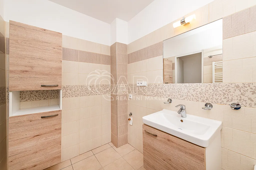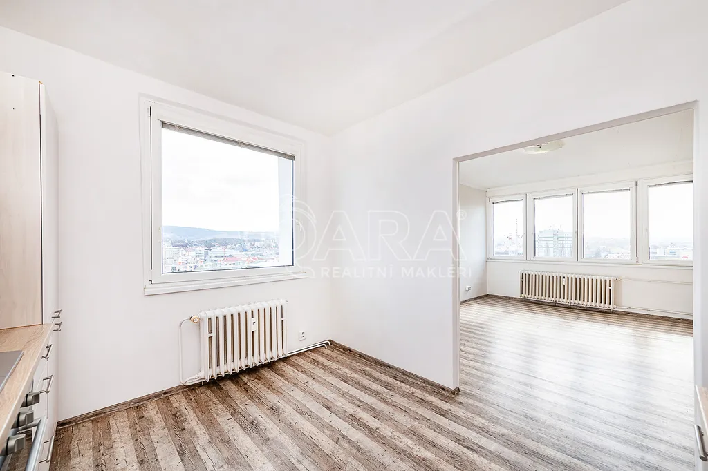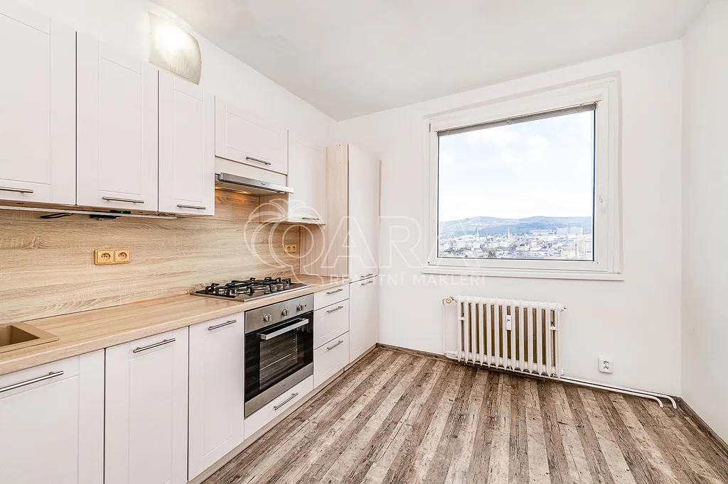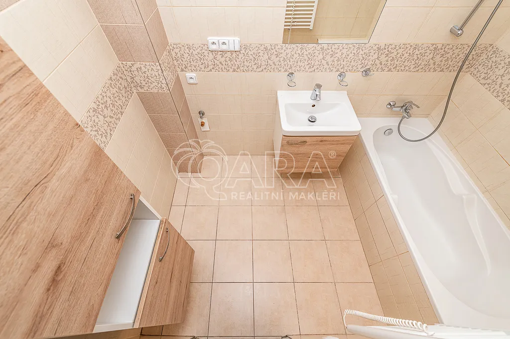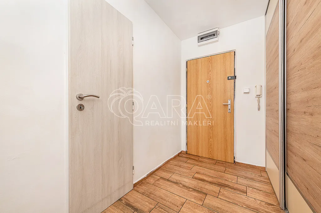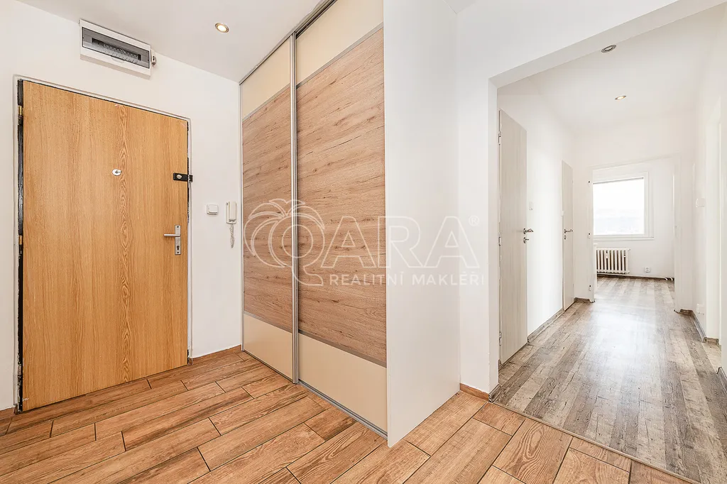 Byt je po rekonstrukci se zděným jádrem a praktickou prostornou šatnou/komorou přístupnou z předsíně. Byt je vybaven kuchyňskou linkou s plynovou varnou deskou a troubou, digestoř je odvětrávaná do šachty. Lednici je možné schovat do linky či zvolit volně stojící (ledničkou není byt vybaven). Prostorná koupelna s vanou a místem pro pračku, wc oddělené. Vytápění a ohřev vody centrální z vlastní plynové kotelny. Plastová okna. Zasklená lodžie. Na podlahách je dlažba a v obytných místnostech jednotná vinylová podlaha.