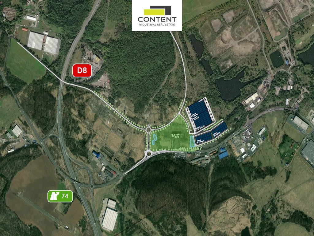 V zastoupení majitele a bez provize nabízíme prostory vhodné pro sklad nebo výrobu, v novém komerčním parku s výborným dopravním napojením na dálnici D8.