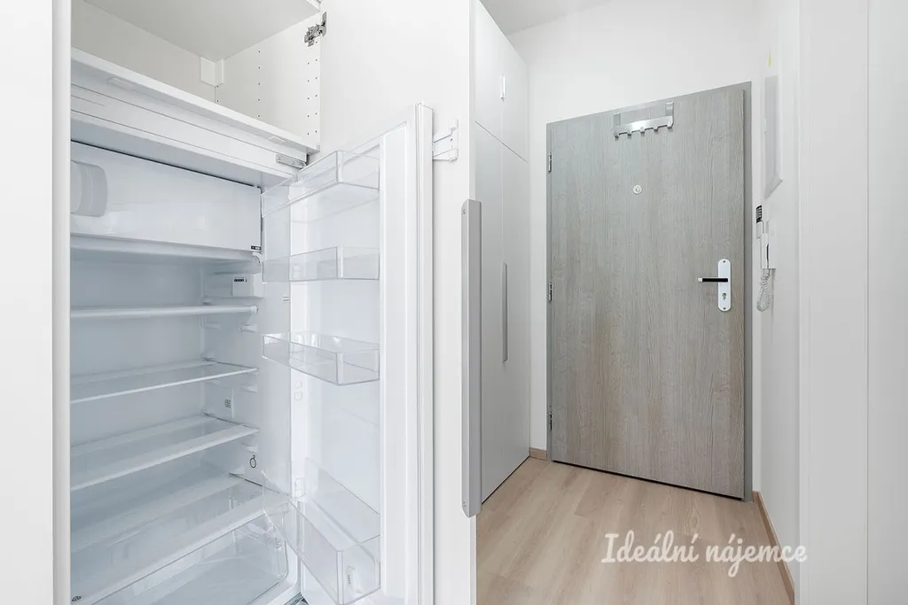 Kuchyňská linka je vybavena všemi spotřebiči (myčka, elektrická trouba, indukční varná deska, mikrovlnná trouba, digestoř). Lednice je prakticky umístěna v předsíni, díky čemuž nenarušuje klid obytné části. Obytný prostor je bez nábytku.
