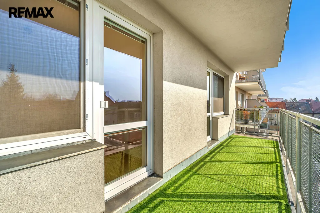 Celková užitná plocha bytu činí 52,2 m², skládá se z obývacího pokoje s vybaveným kuchyňským koutem, dvou pokoju se samostatným vstupem z chodby, koupelny se sprchovým koutem, samostatné toalety a vstupní chodby. K dispozici je také prostorný balkón o ploše 12,8 m², na který je vstup ze dvou pokojů. K bytu náleží větší sklep, poskytující dostatek úložného prostoru.