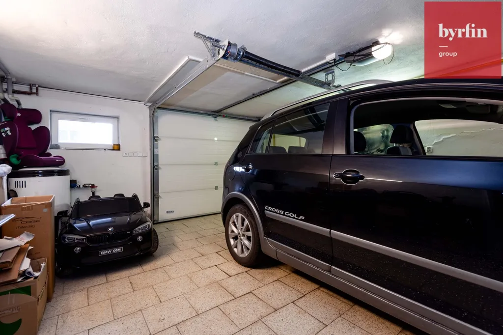 Parkování je možné ve velké garáži v domě, nebo na dvou venkovních parkovacích stání na zpevněné ploše před domem.