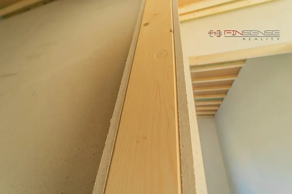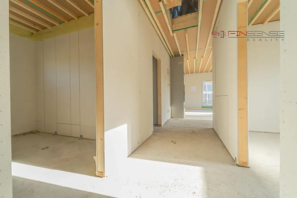 Interiér je připraven na montáž elektroinstalace, vodovodu, topení, podlah a nový majitel si tedy může doladit vše podle svých představ. V obývacím pokoji je instalován komín od společnosti Schiedel s integrovanou krbovou vložkou a chodba je parádně prosvětlena světlovodem od firmy Velux.