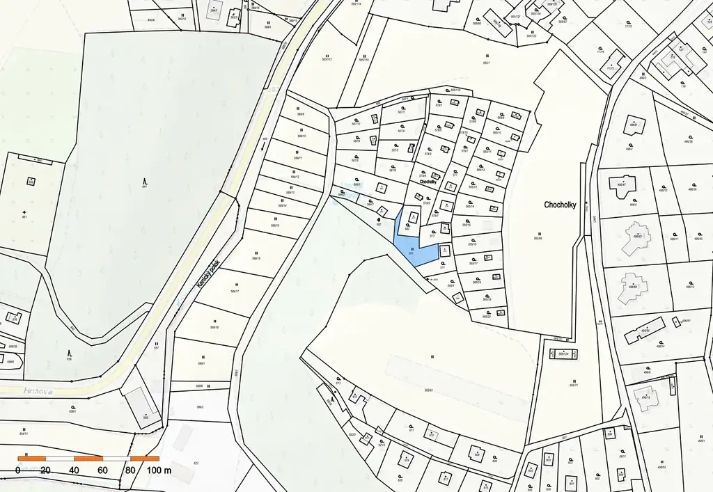 Dále je součástí prodeje id. 1/20 pozemku prac.č. 581 trvalý travní porost (rokle), který zajišťuje přístup k chatě.