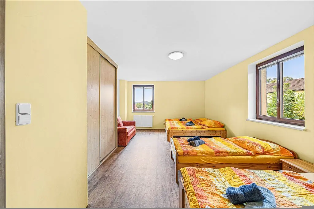 Celý objekt je koncipován jako apartmánový dům s pěti samostatnými jednotkami, ideální pro větší rodinu, skupinu přátel nebo krátkodobý pronájem.