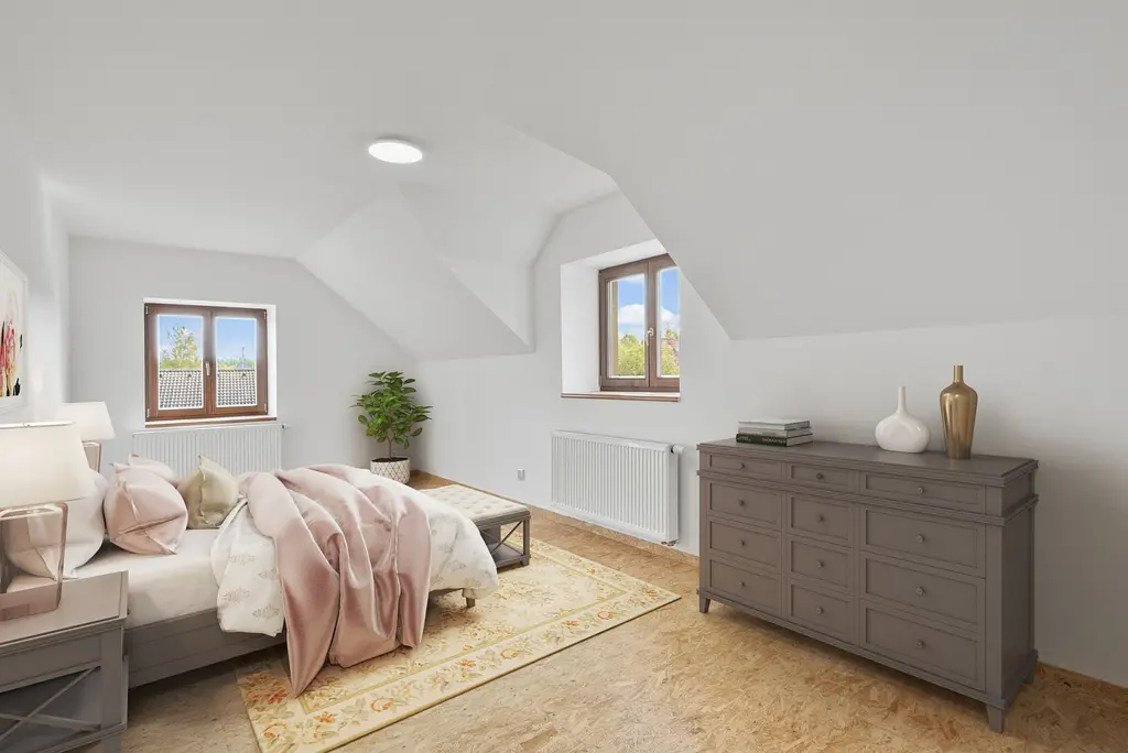 Rodinný dům kombinuje původní a nově vybudovanou část – horní patro vzniklo před několika lety a tvoří plnohodnotné obytné zázemí odpovídající dnešním standardům. Dům tvoří dvě téměř samostatné bytové jednotky – v přízemí dispozici 2+1, v podkroví pak prostorné 3 (4)+kk. Díky tomu může skvěle posloužit jako dvougenerační bydlení, nebo pohodlný domov s možností pronájmu druhé části, či zázemí vlastního bydlení a podnikání.