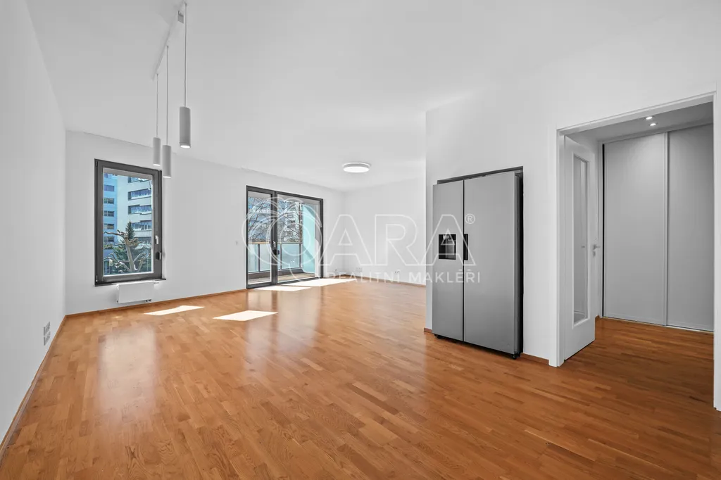 Pronájem prostorného bytu 4+kk (109 m²) se dvěma balkony, garážovým stáním a recepcí – Rezidence Baarova, Praha 4
