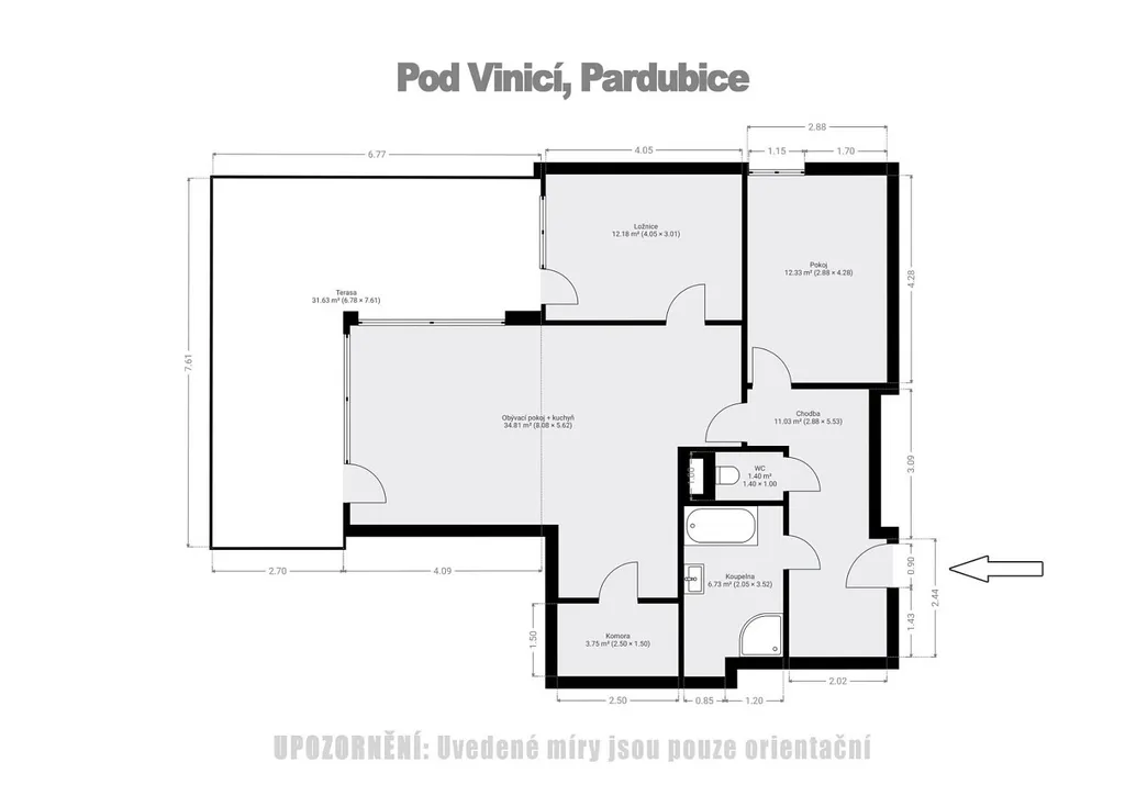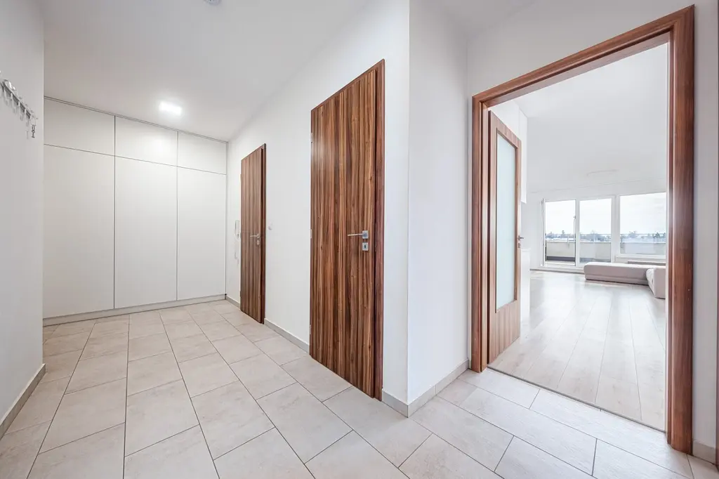 Nabízíme k pronájmu moderní nadstandardní, dobře dispozičně řešený zděný byt 3+kk s terasou v osobním vlastnictví o celkové výměře 117,1 m² včetně terasy, kdy podlahová plocha bytu je 85,5 m² a terasa je o výměře 32,6 m² v bytovém komplexu U Vinice v Pardubicích v docházkové vzdálenosti od centra města. Byt je vybaven kuchyňskou linkou s vestavěnými spotřebiči (el. trouba, lednice s mrazákem, myčka, el. varná deska, digestoř), sedačkou, a vestavěnou skříní v ložnici, pokoji a na chodbě. Bytová jednotka je situována v 2. NP. se dvěma výtahy. Dispozice bytu: kuchyň s obývacím pokojem, spíž, ložnice, pokoj, chodba, koupelna s vanou a se sprchovým koutem a samostatné WC. K bytu náleží kryté parkovací stání v suterénu domu u kterého je sklep. V domě je rozveden pozemní digitální příjem TV a vysokorychlostní internet po optických kabelech. O společné prostory v domě se stará úklidová firma. V dosahu je zastávka MHD, supermarket KAUFLAND a obchodní centrum (drogerie DM, KIK, PEPCO, JYSK, VESNA). Dále je v dosahu fotbalové hřiště, tenisové kurty, cyklostezka podél Chrudimky a veškerá občanská vybavenost. Kauce + provize RK. Volný od dubna 2026. DOPORUČUJEME.
