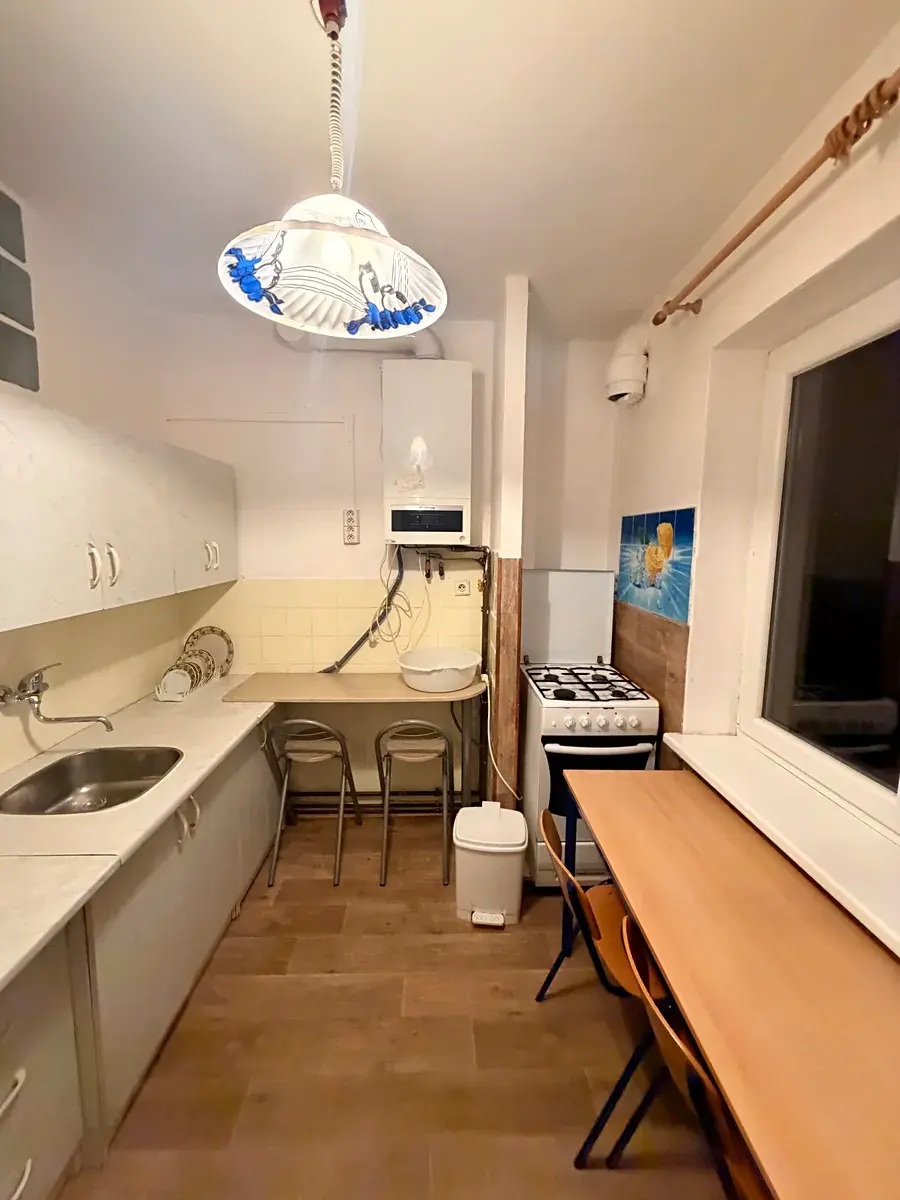 V bytě je předsiň se šatnou, tři neprůchozí pokoje, kuchyně, koupelna s vanou a WC.
