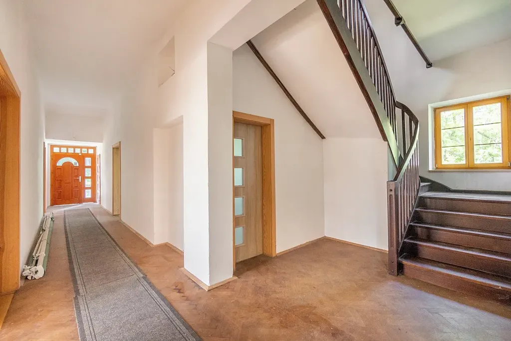 Samotná vila s zastavěnou plochou 194 m2 má dvě prostorná patra a přes 10 pokojů, které poskytnou dostatek místa pro rodinu, firmu nebo komunitní projekt. Ve sklepních prostorách najdete technické zázemí i samostatný byt s vlastním vchodem ze zahrady, ideální například pro hosty či personál. Především půdní prostor nabízí skladovací či budoucí kreativní možnosti.