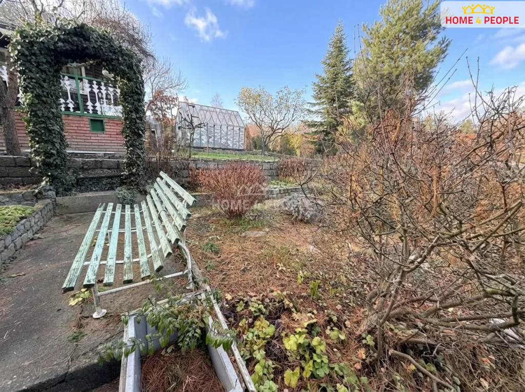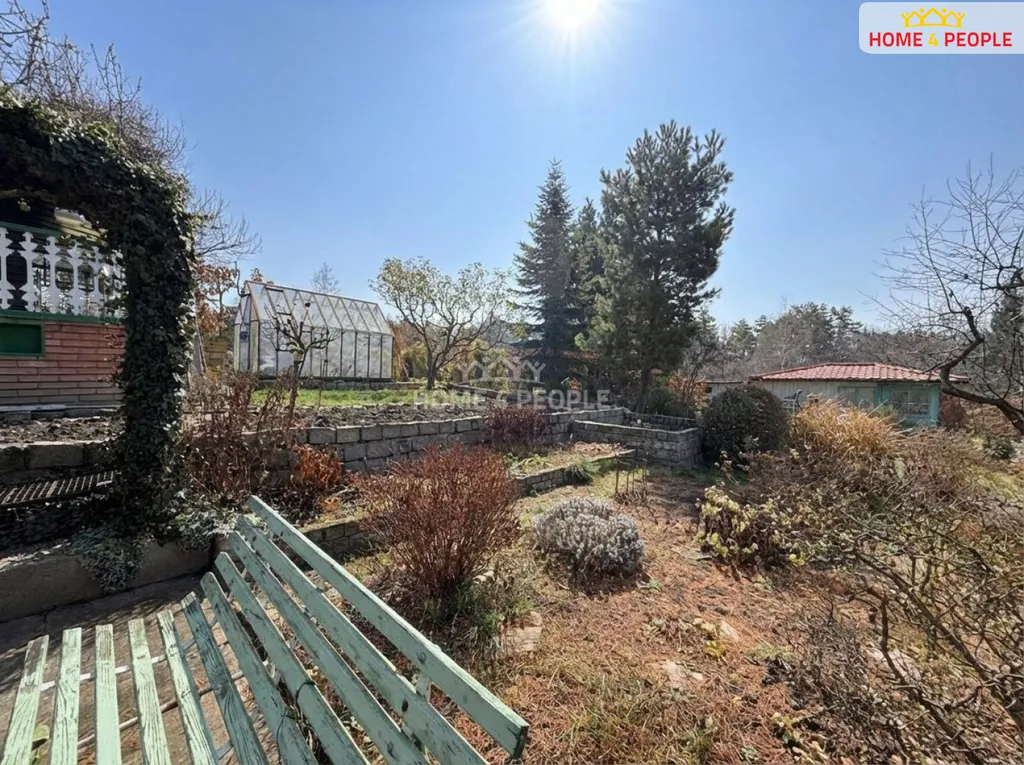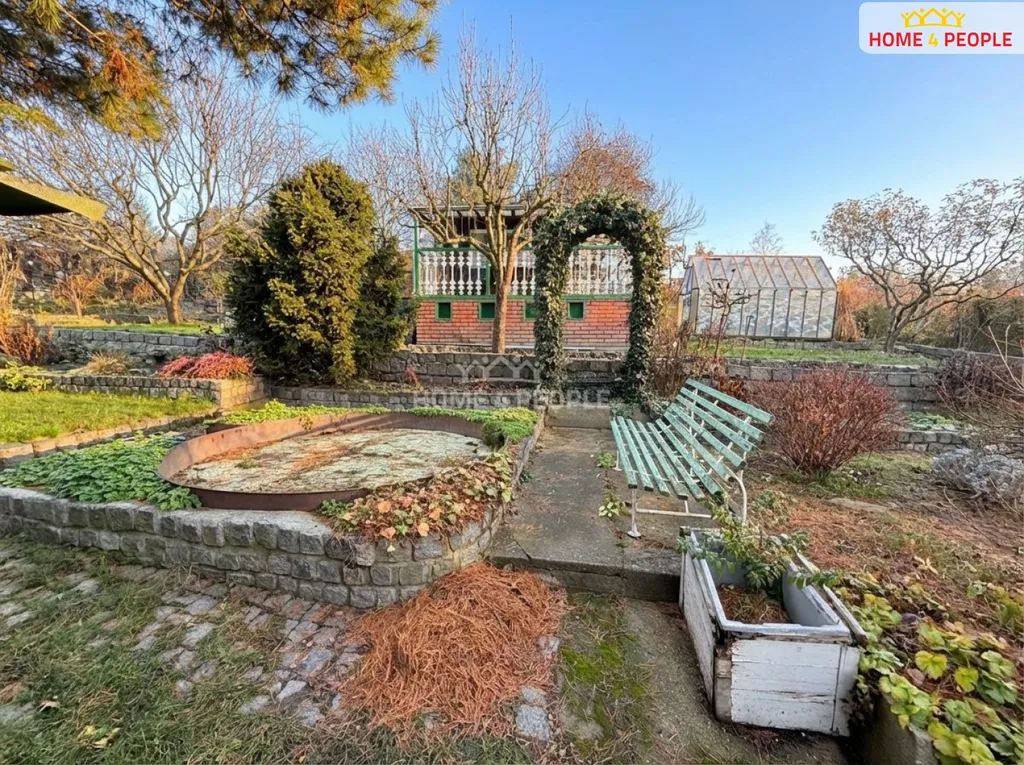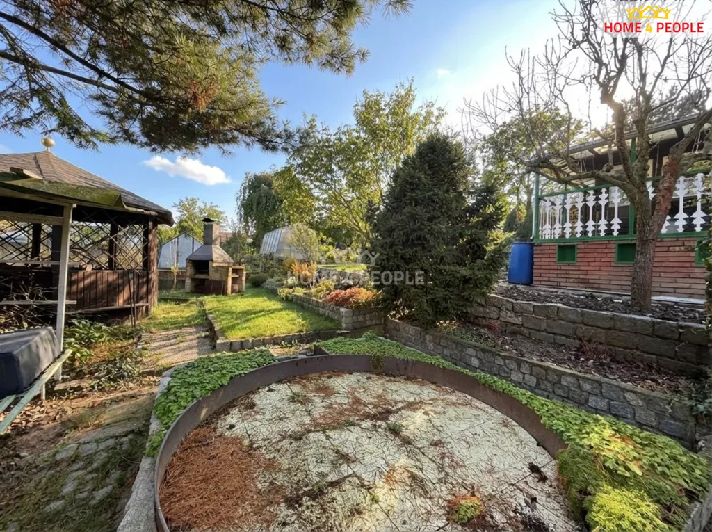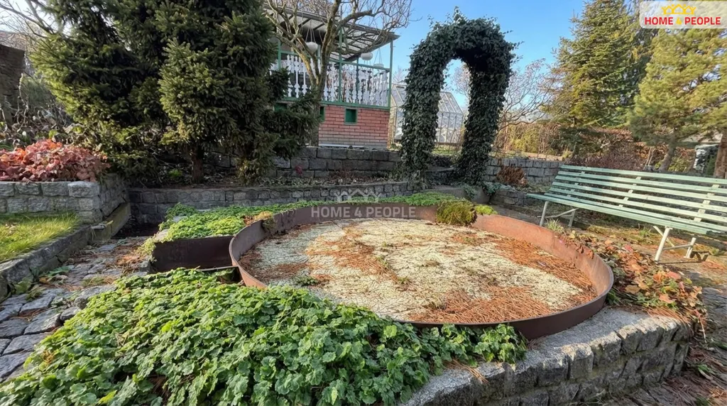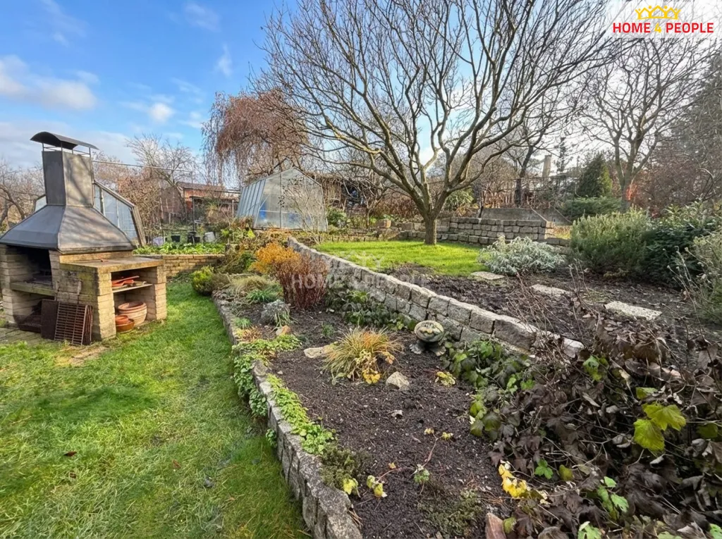 Velká udržovaná zahrada s množstvím trvalek, cibulovin a okrasných keřů poskytuje několik příjemných míst k relaxaci a odpočinku: zastřešený dřevěný altán s posezením, zděný venkovní krb-udírna, vybetonovaný kruhový prostor pro bazén. Pěstování zeleniny umožňuje zasklený skleník a další vybudované záhony. Na zahradě jsou vzrostlé ovocné stromy: jabloň, hrušeň, meruňka, dále stromkové rybízy + vzrostlé jehličnany.