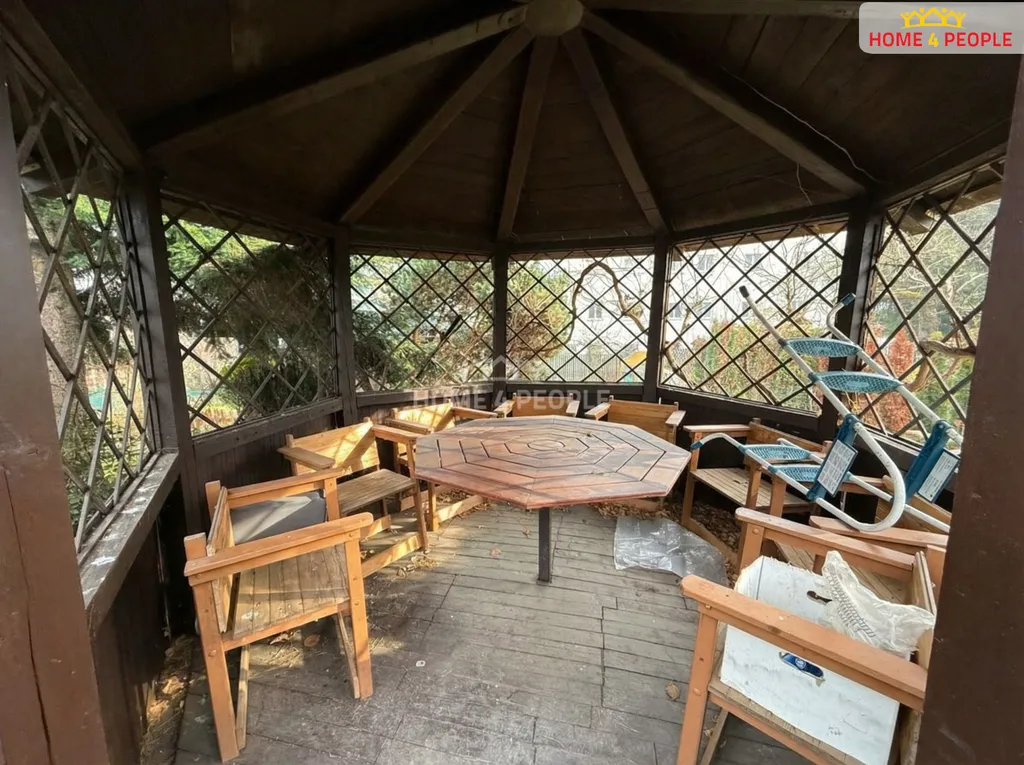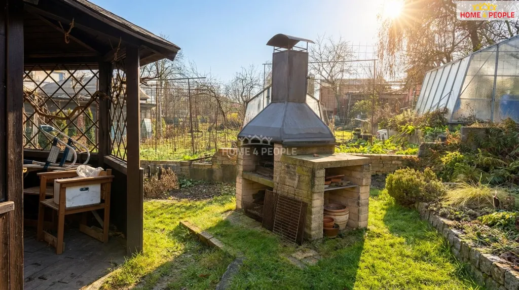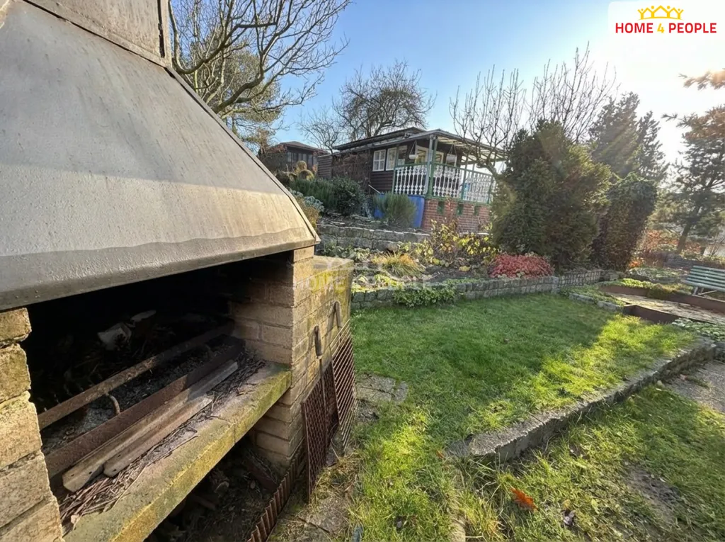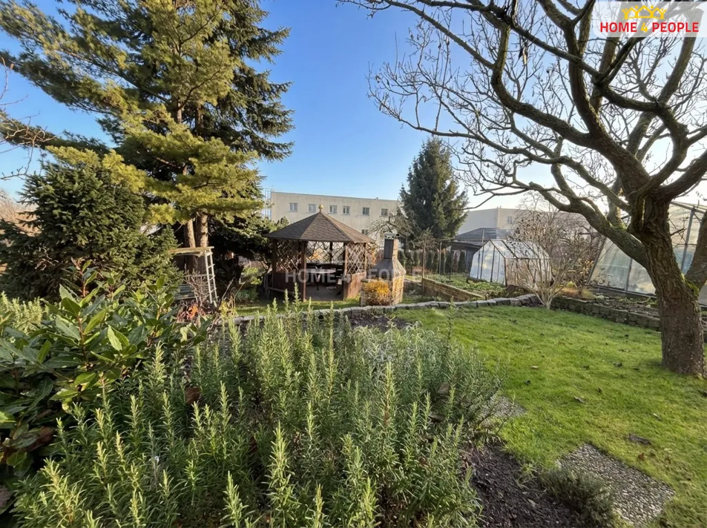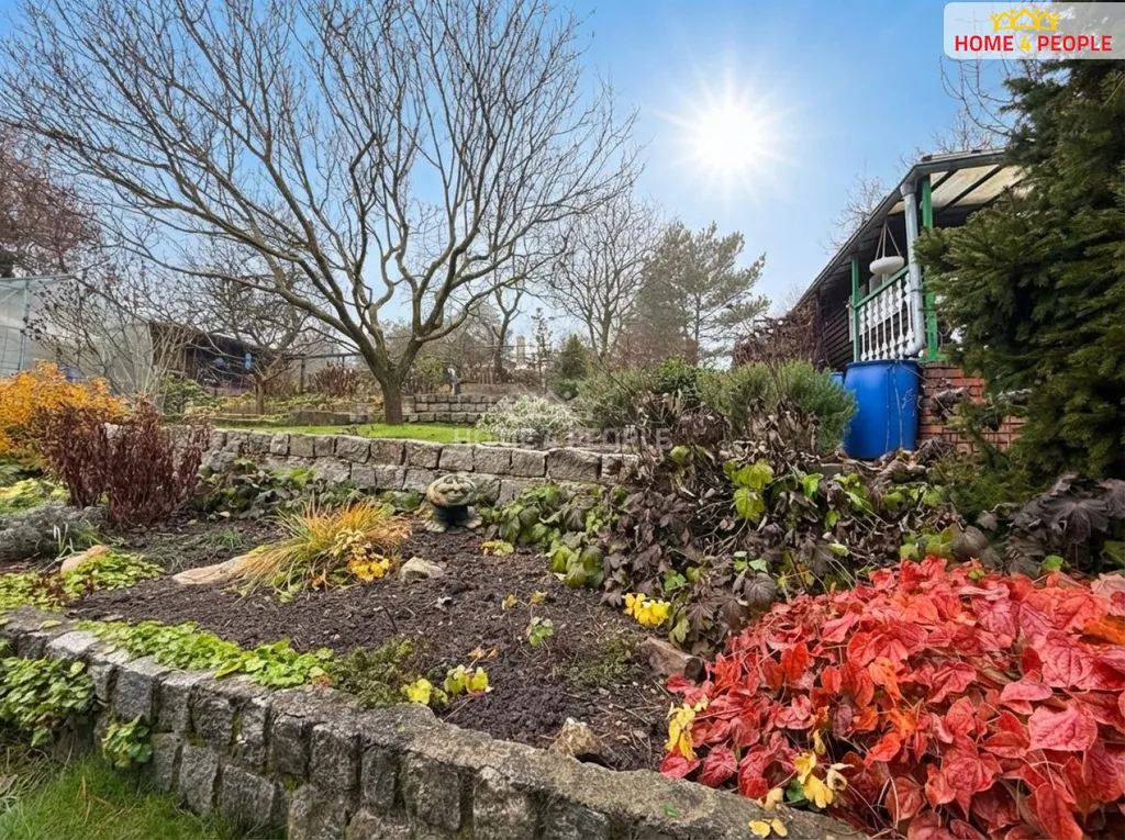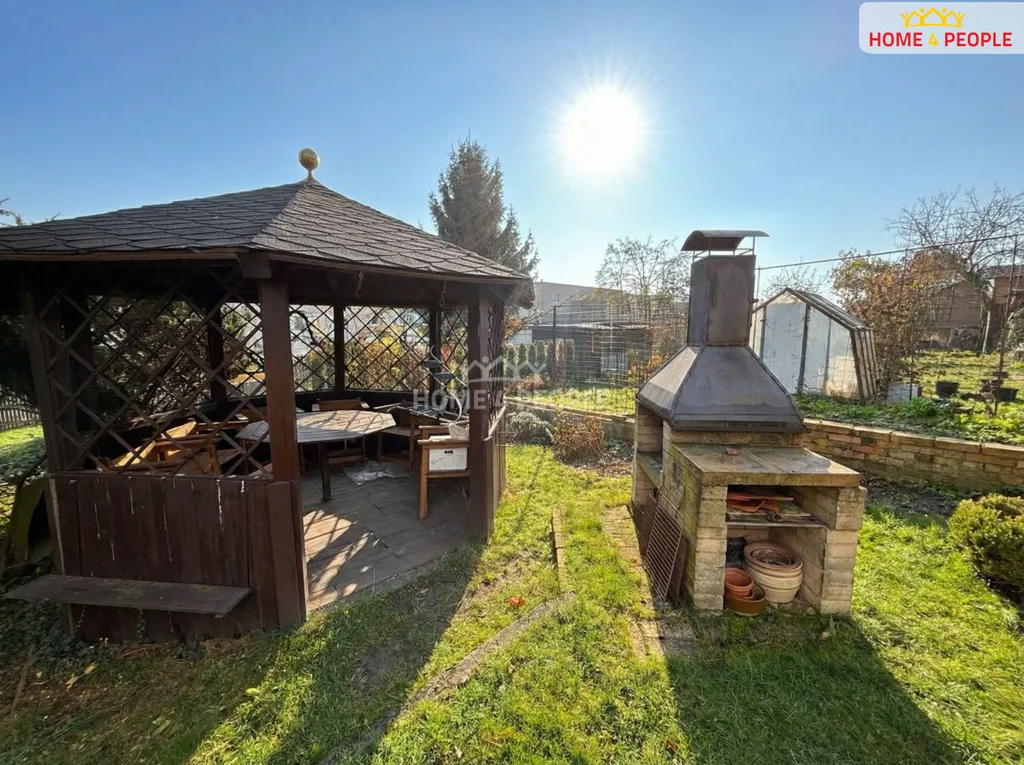 Velká udržovaná zahrada s množstvím trvalek, cibulovin a okrasných keřů poskytuje několik příjemných míst k relaxaci a odpočinku: zastřešený dřevěný altán s posezením, zděný venkovní krb-udírna, vybetonovaný kruhový prostor pro bazén. Pěstování zeleniny umožňuje zasklený skleník a další vybudované záhony. Na zahradě jsou vzrostlé ovocné stromy: jabloň, hrušeň, meruňka, dále stromkové rybízy + vzrostlé jehličnany.