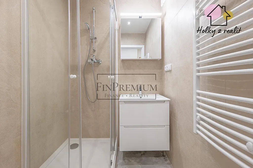 Byt nabízí prakticky řešený obytný prostor s kuchyňským koutem a dostatkem úložných prostor. Byt je částečně zařízený, k dispozici je kuchyňská linka se spotřebiči (lednice, trouba, varná deska). Součástí je koupelna se sprchovým koutem a samostatné WC, což zvyšuje komfort bydlení. K bytu náleží také sklepní kóje.