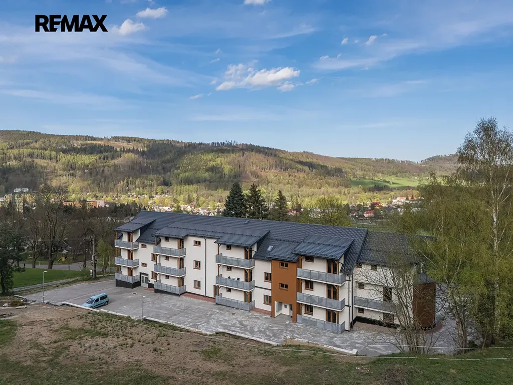 Nabízíme k prodeji podhorský apartmánový byt se dvěma terasami ve městě Vrbno pod Pradědem, nově postavený s důrazem na kvalitní provedení. Byt nabízí komfort trvalého bydlení v srdci přírody a krásný výhled na pohoří Jeseníků. Je vybaven sklepní kójí, lyžárnou, terasou a parkovacím stáním v ceně. Jeho orientace je na jihozápad, což zajišťuje dostatek slunečního svitu a nachází se v prvním nadzemním podlaží. Byt je napojen na městský vodovod a kanalizaci a v každé místnosti je podlahové vytápění pro maximální komfort.