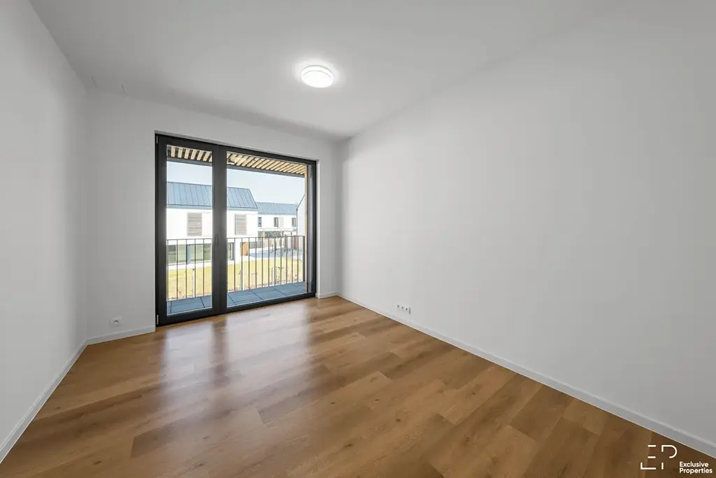Byt je umístěn ve 2NP dvoupodlažní zděné Budovy energetické třídy A o dispozici 3+kk o celkové ploše 72m2 bez teras a sklepa. Netradičně pro 2 jednotky, vždy jeden společný vchod. Orientace ložnice na severovýchod, obývací pokoj a kuchyň na jih, jihozápad. Na obě strany budovy situovány kryté terasy o ploše 20,6m2, u obývací pokoje přes celou šíři bytu prosklený HS portál na terasu o ploše 13,6m2 s výhledem do přírody a Ctěnického háje. Opravdové soukromí. Bytový dům celkem 16 bytových jednotek.
