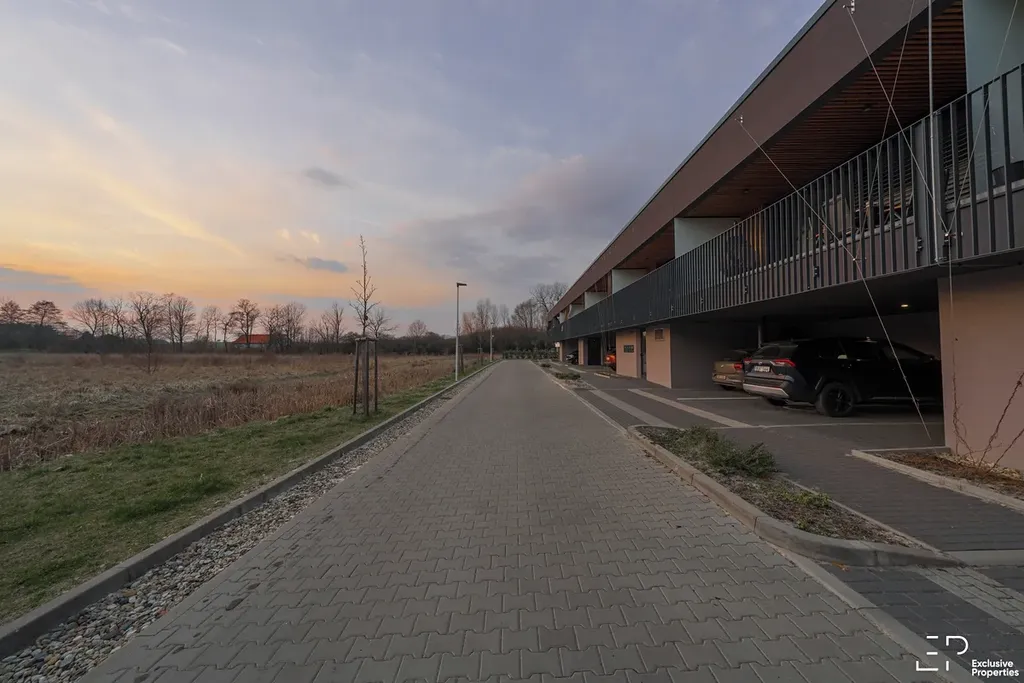 Dispozice: vstupní chodba (prostor pro vestavěnou šatní skříň a pračku), koupelna s vanou, samostatné WC, obývací pokoj s prostorem pro obývací část a prostorově oddělenou kuchyň se sezením, dvě ložnice s terasou. Součástí bytu je prostorná sklepní 5,2m2 kóje a jedno kryté parkovací stání (širší 3,4m) v části jen dvou parkovacích stání, přímo vedle vchodu k bytu.