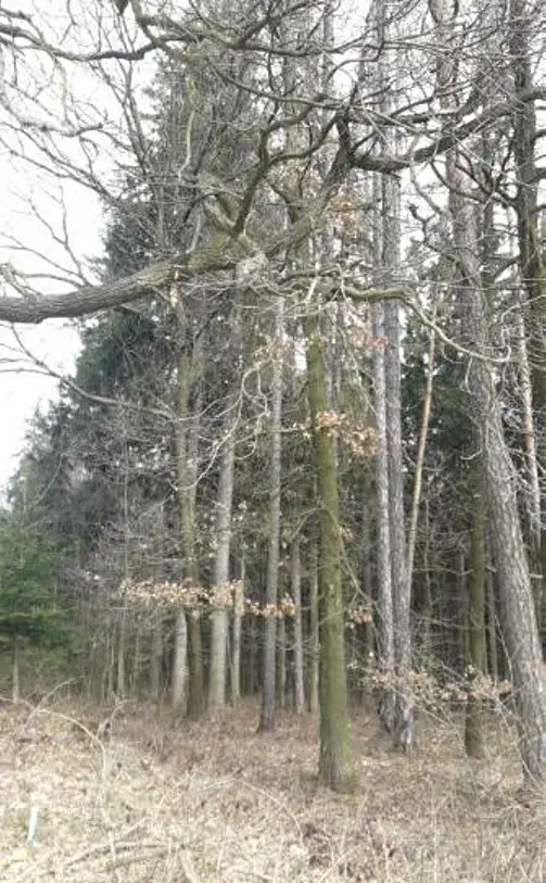 řemenová parcela s lesním porostem mýtního věku, porost zast. SM 60% MD 30% BO 10%