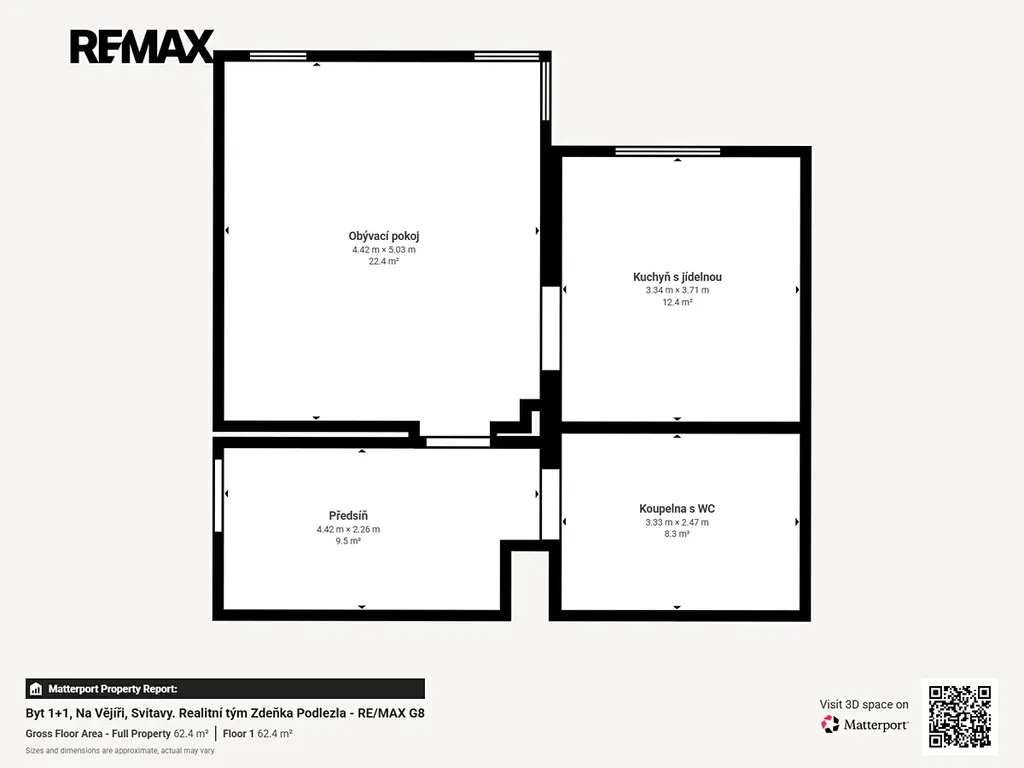 Plocha bytu je 59 m2 včetně zděného sklepa 3,8 m2, který je umístěn ve snížením přízemí. Byt je bezbariérový. Je umístěn v přízemí domu s přístupem bez nutnosti překonat výškovou překážku, má širší vstupní i interiérové dveře, prostorné zádveří a velkou koupelnu. Orientace bytu je na východ.
