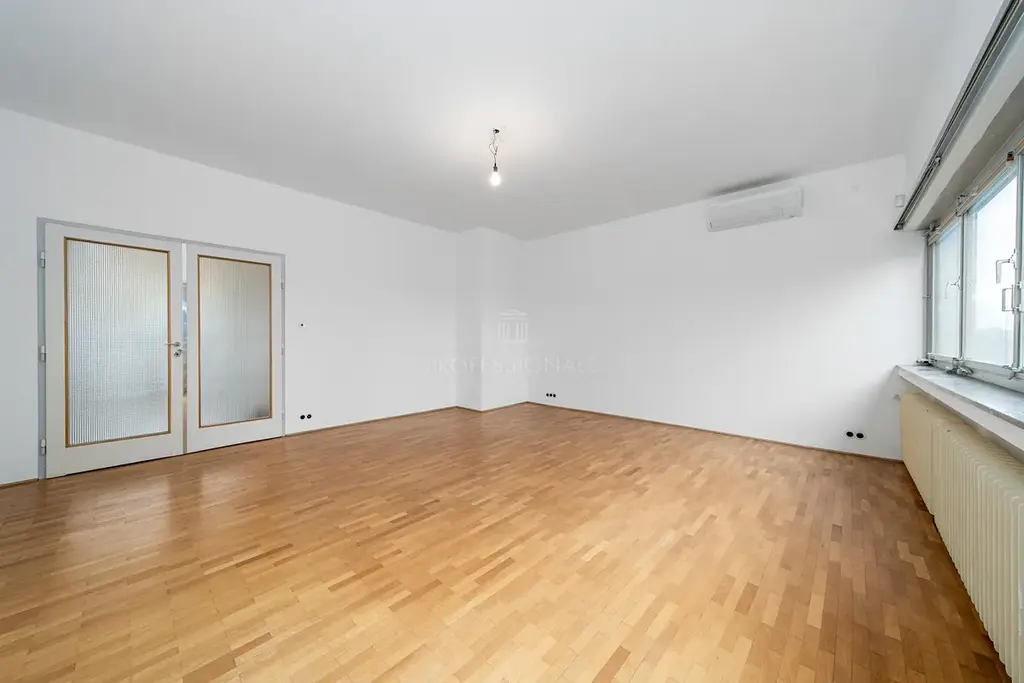 Nabízíme k pronájmu nádherný byt 2+1 o ploše 95 m², situovaný v posledním podlaží funkcionalistické vily na Hanspaulce. Byt nabízí vstupní chodbu, prostorný obývací pokoj se vstupem na balkon, ložnici, plně vybavenou kuchyni, koupelnu s vanou a separátní toaletu. Díky umístění v posledním podlaží, velkorysému prosklení a orientaci na jihovýchod a jihozápad je byt přirozeně prosvětlený po celý den a nabízí krásné výhledy na celou Prahu. V bytě je nainstalována klimatizace i zabezpečovací systém.K bytu náleží také přístup na sdílenou střešní terasu o velikosti 52 m². K dispozici je i společná prádelna a sklepní kóje v suterénu domu.Funkcionalistická vila Dr. ing. Eustacha Mölzera z roku 1938 je architektonickou památkou. Výjimečná stavba s ocelovým skeletem stojí na rohovém pozemku bývalé Kodymovy zahrady a byla navržena diagonálně k parcele tak, aby z bytů nabízela nerušené výhledy na panorama Prahy a zároveň zachovala původní vzrostlou zeleň. Ve vile se nacházejí pouze tři bytové jednotky, což zajišťuje klidné a komorní bydlení.Nemovitost se nachází v klidné rezidenční části Prahy 6 s výbornou dostupností do centra. Zastávka autobusu je v blízkosti domu s rychlým spojením na metro A. K nastěhování ihned. Poplatky nejsou zahrnuty v ceně nájmu.