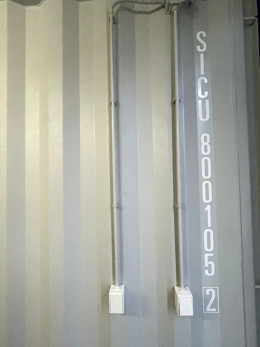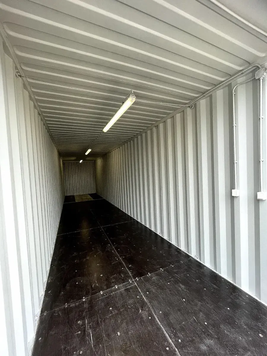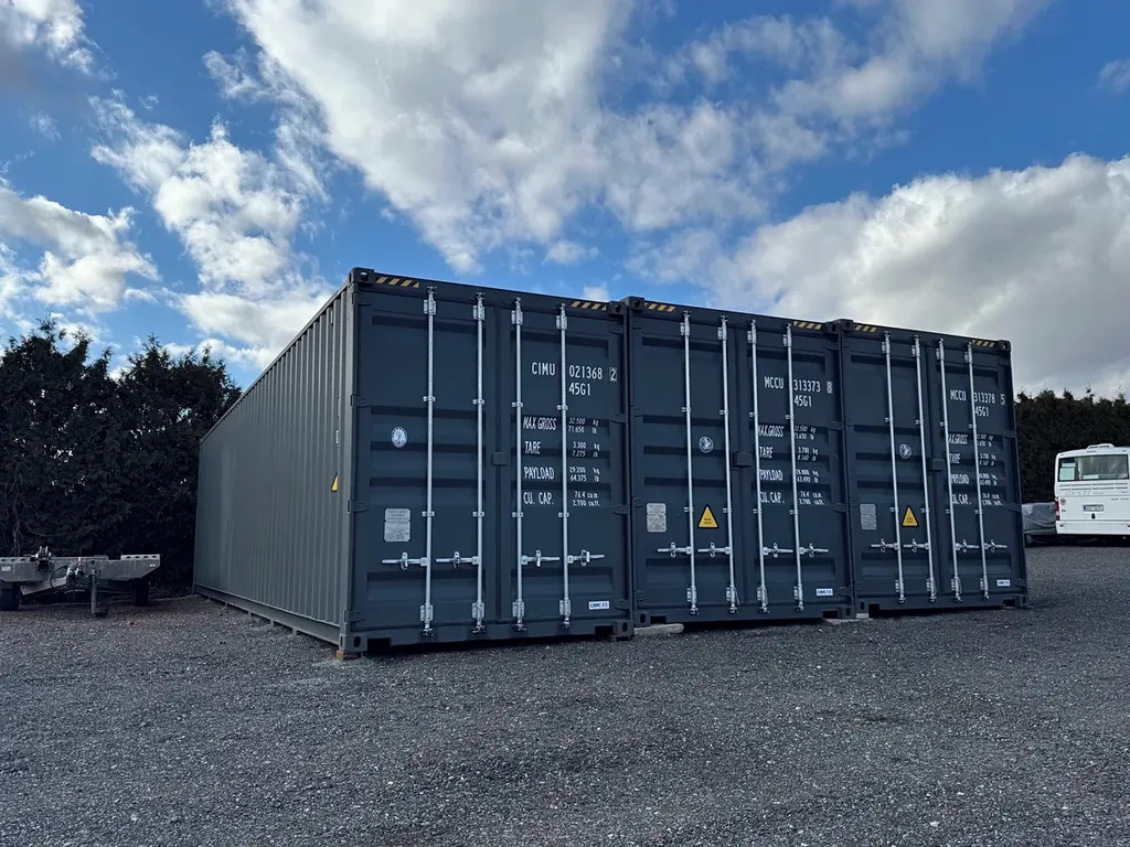 Dvoukřídlá vrata 2,343 m x 2,690 m. Kontejnery jsou přístupné autem až ke dveřím s dostatečným prostorem pro manipulaci. Objem kontejneru 75,7 m3.