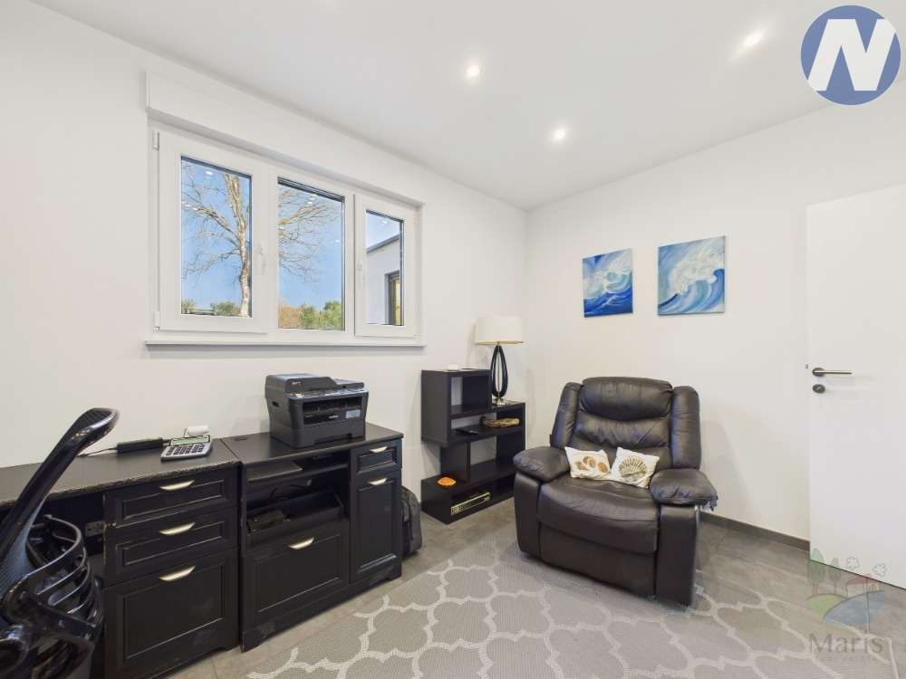 Součástí objektu je pět prostorných pokojů, dvě plně vybavené koupelny a samostatné WC pro hosty. Díky světlem prozářeným prostorám, balkonu a svěží zahradě dům nabízí i venkovnímu bydlení. Moderní podlahové vytápění zajišťuje celoroční komfort a pokročilý systém rekuperace vzduchu zajišťuje nepřetržité větrání a energetickou účinnost v celém domě.