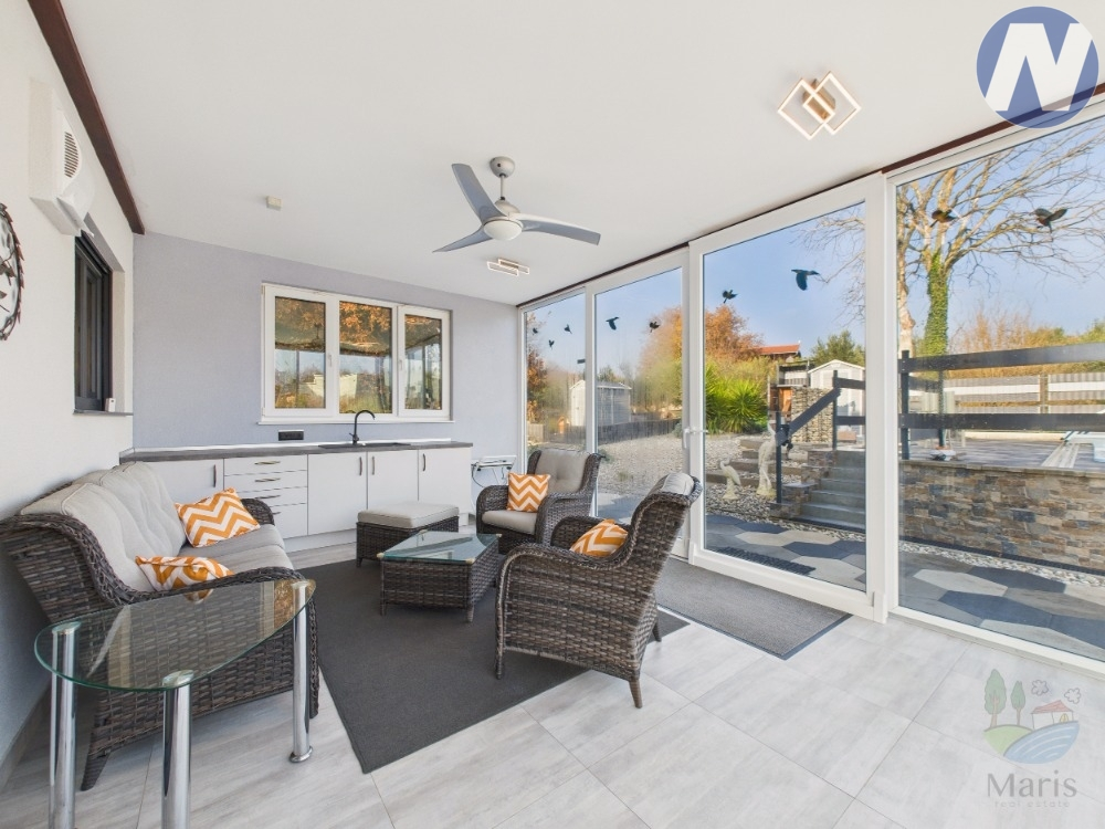 Nabízíme Vám moderní rodinný dům s bazénem, který se nalézá se v klidné a malebné pobřežní vesnici Pomer nedaleko Medulinu, dům nabízí pohodlí a soukromí. Je kvalitně postaven v roce 2011 pouhých 900 metrů od moře a přístavu. Rozkládá se na ploše 291 m² ve dvou dobře organizovaných patrech a stojí na hezkém a udržovaném pozemku o rozloze 824 m². Je promyšleně, komfortně a funkčně navržen. Je ideálním místem pro každodenní bydlení, dovolenou i relaxaci.