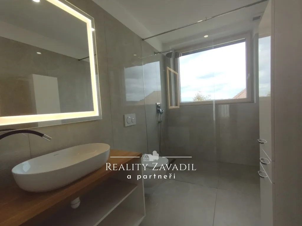 Samozřejmostí je podlahové vytápění tepelným čerpadlem, elektrické venkovní žaluzie, vestavěné skříně a dostatek úložného prostoru.