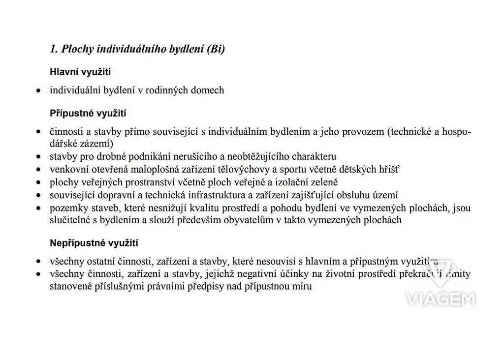 Možnosti využití pozemků jsou dány územní plánem, který předurčuje pozemky pro rekreační zástavbu se specifikací “BI - plochy individuálního bydlení”.